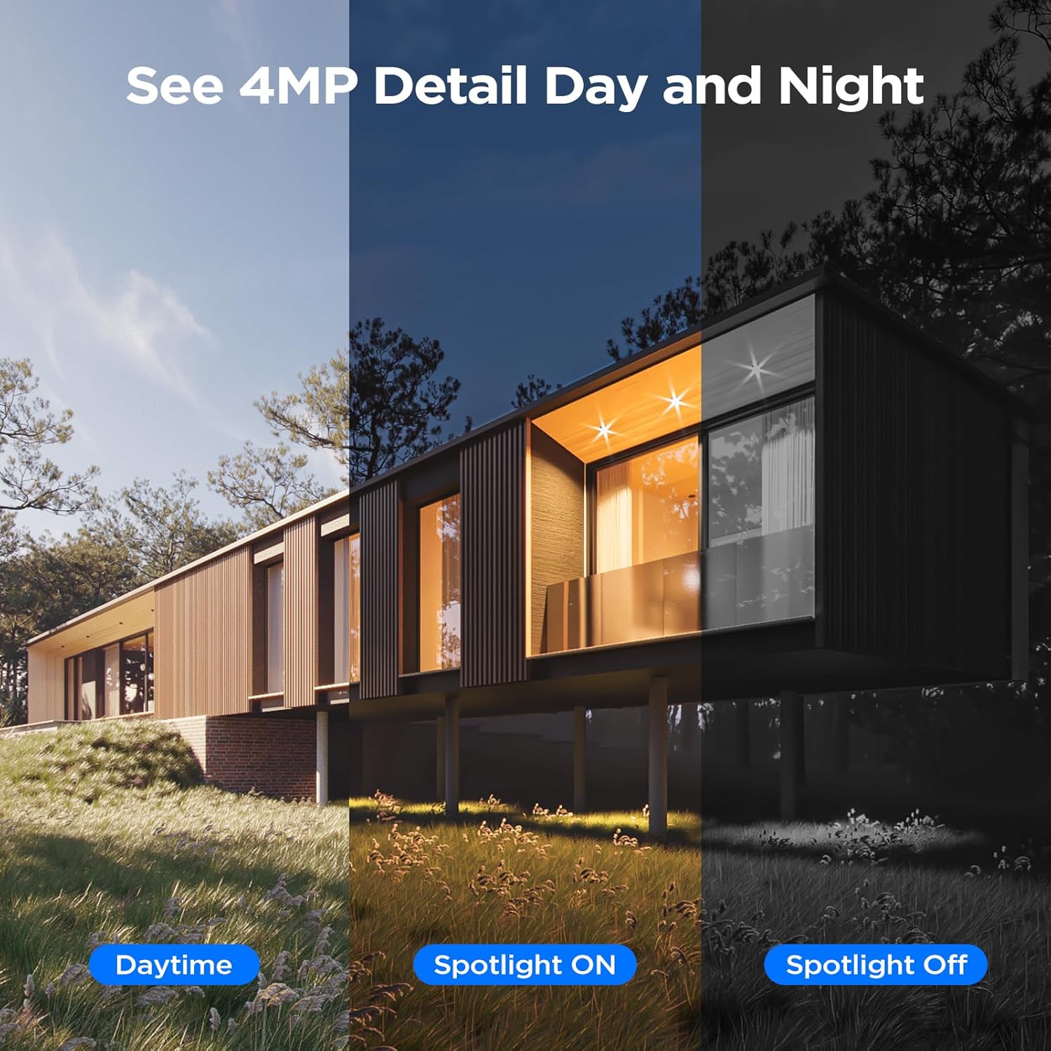 - 4MP HD & Color Night Vision: 2K solar security cameras wireless outdoor captures every vivid details with 4MP (HD 2560*1440P)resolution. get clearer picture quality than 1080P and 3MP. Equipped with 4 spotlights, the camera provides full color night vision in very low light conditions with a visible range of up to 65 feet.