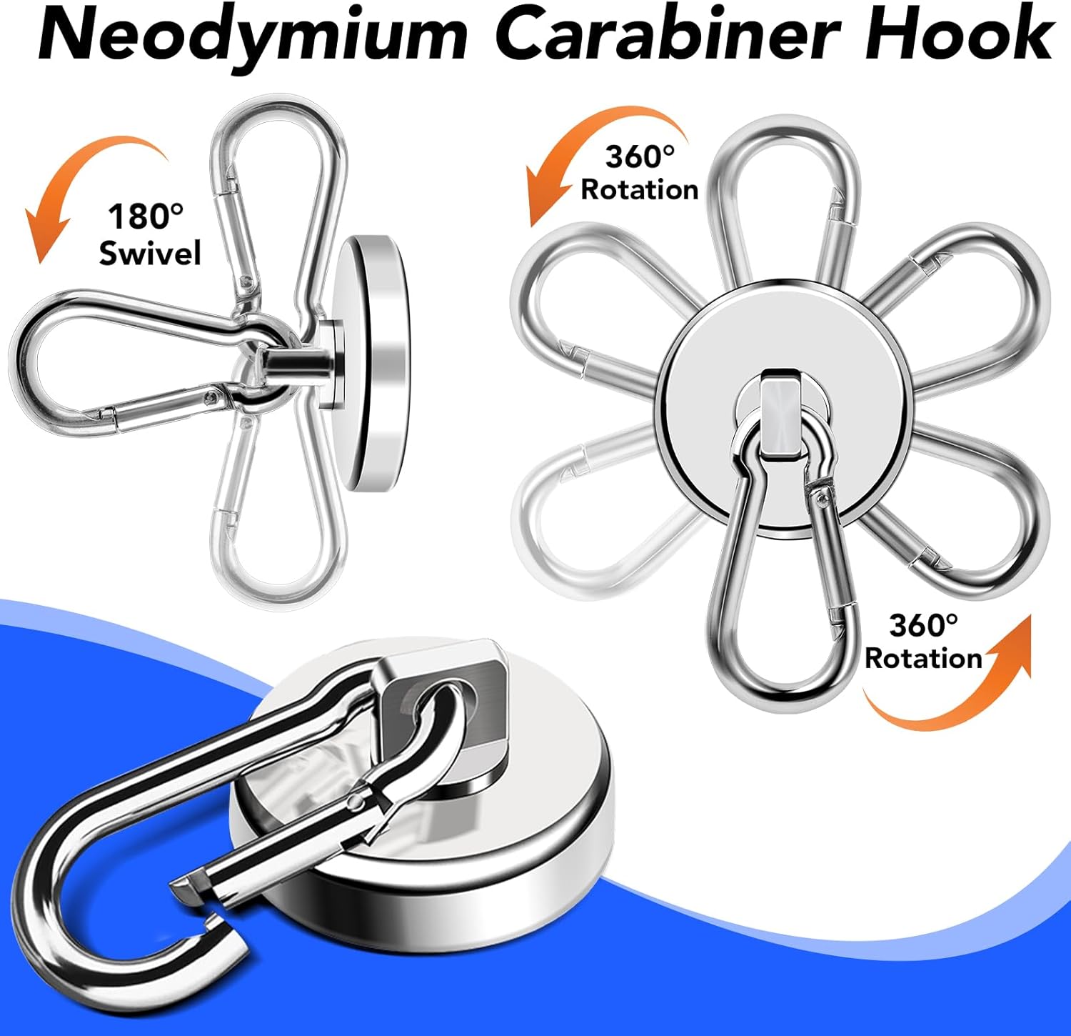 LOVIMAG Magnetic Hooks for Cruise Cabins, 70LBS Swivel Magnet Hooks, Cruise Must Haves with Swivel Carabiner Hook for Hanging, Strong Neodymium Magnets with Hook for Ceiling, Garage Etc-6 Pcs