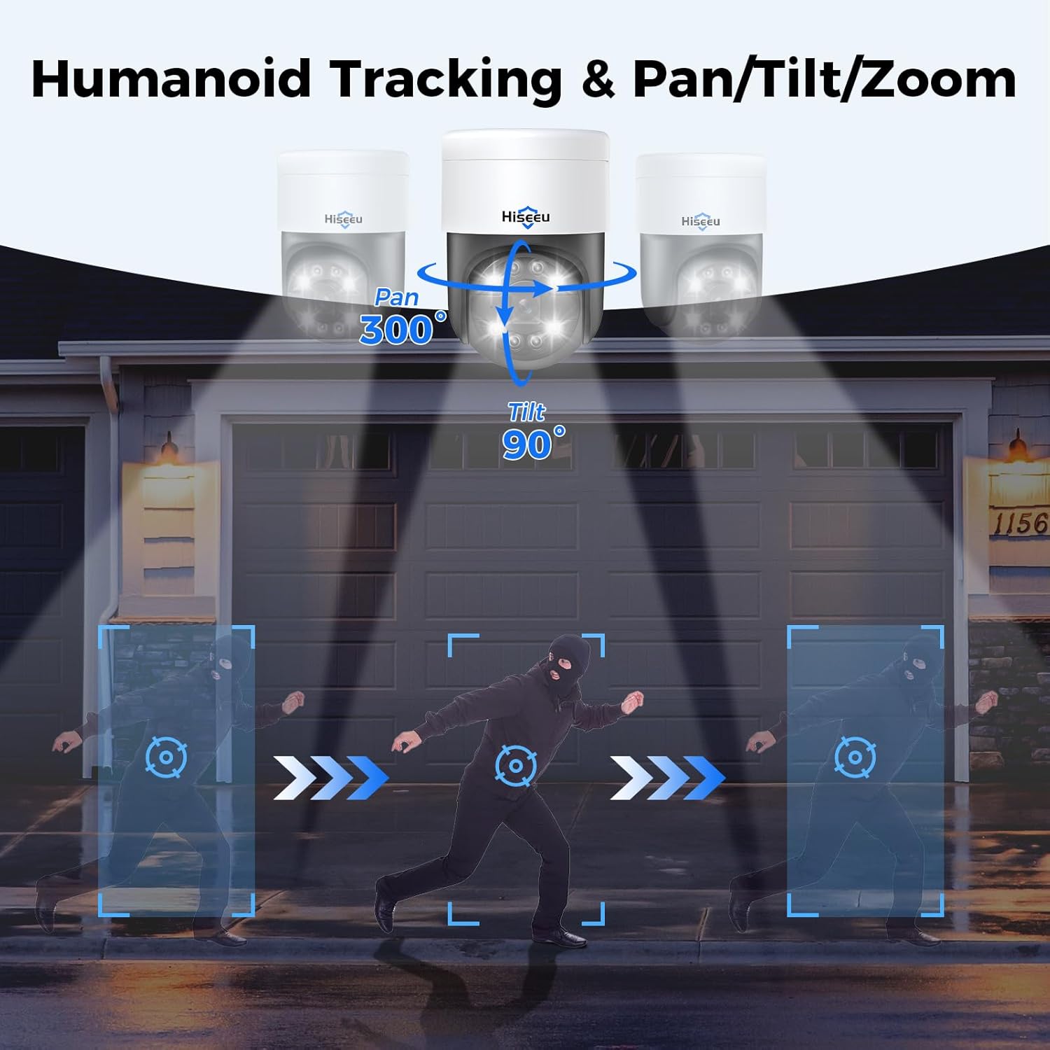 [300°Pan 90°Tilt+Human Tracking] Hiseeu 4K PoE PTZ Camera System,NVR Security Camera System w/6Pcs 5MP Wired Security Camera Outdoor&Indoor,2-Way Audio,Waterproof,7/24 Record for Home Surveillance