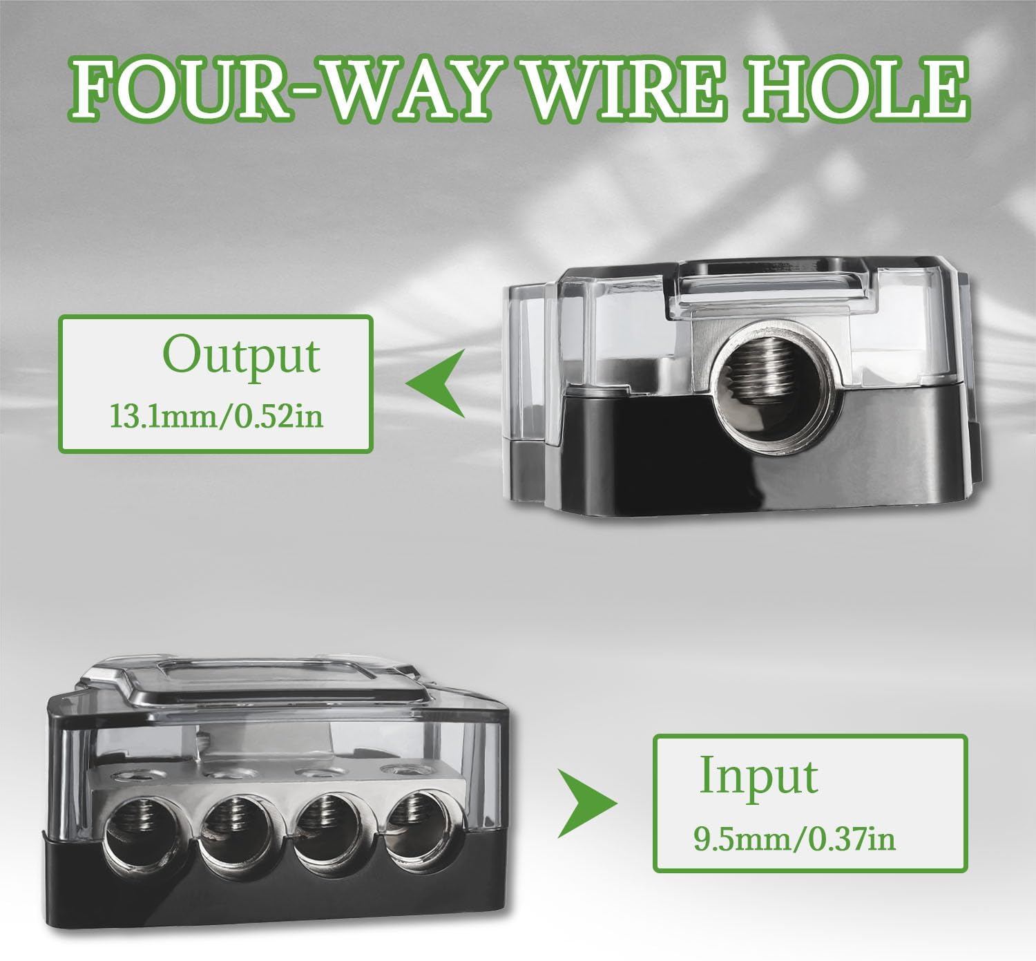- 【Adaptation】Input Accepts 1x 0/2/4 AWG Gauge Output Accepts 4x 4/8/10 Gauge