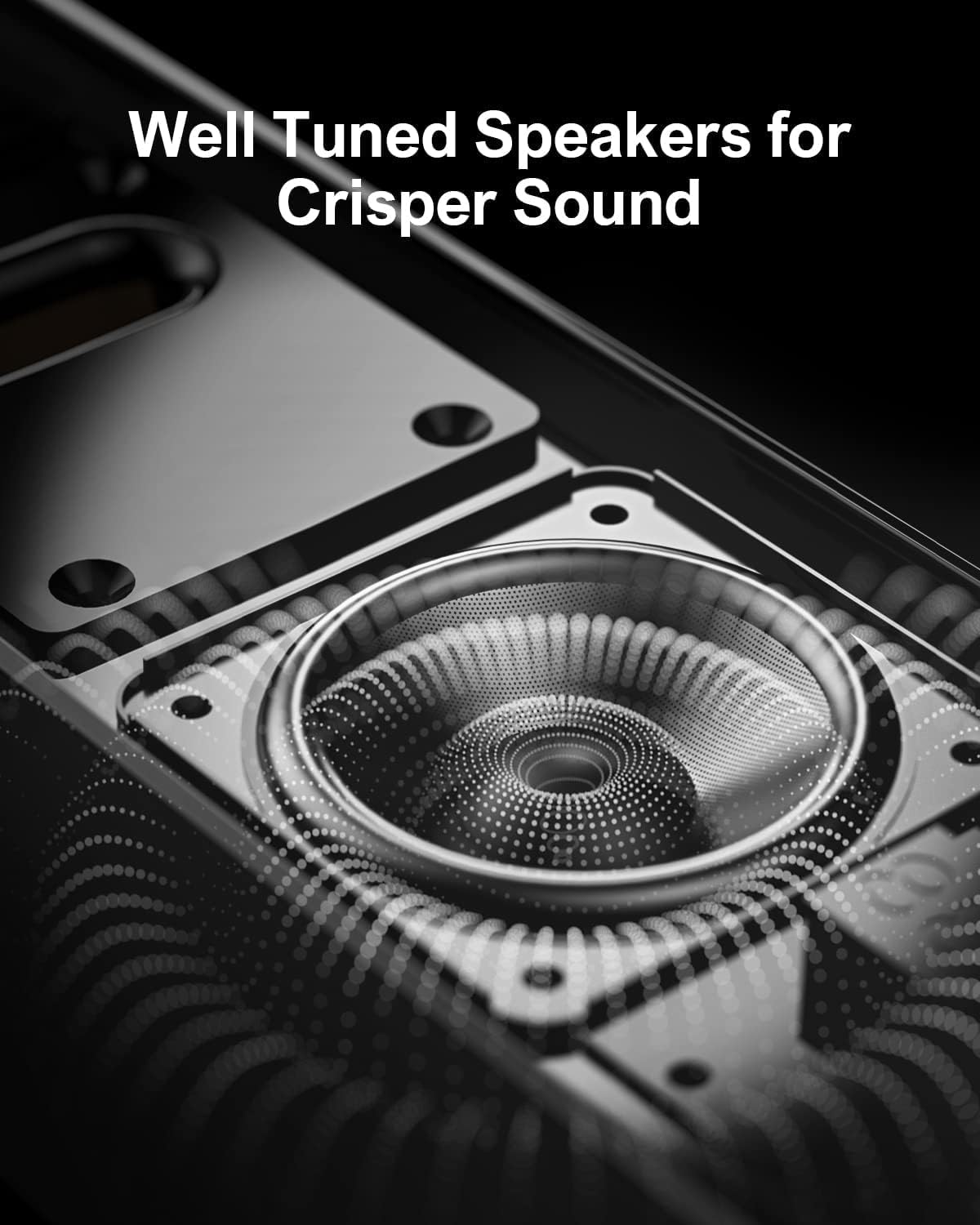 - Seamless Connectivity - The soundbar has wired and wireless dual connection options, including ARC, Optical, AUX, and USB ports (all cables included). Bluetooth 5.3 technology ensures faster speeds and a coverage range of up to 49 feet.