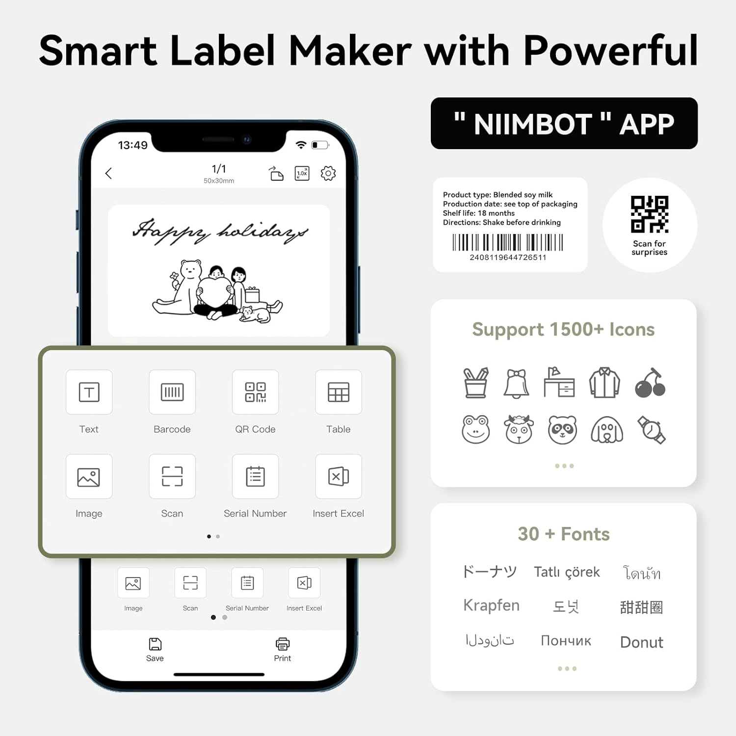 - 【Easy TO Use】It is incompatible with iPad. B1 Bluetooth label printer supports iOS & Android and PC. The app included more than support 30+ fonts/Languages, 100+ borders, and 1500+ symbols. Just need to download the free app, choosing and connecting printer model B1 from NIIMBOT APP, Then Enjoy Printing