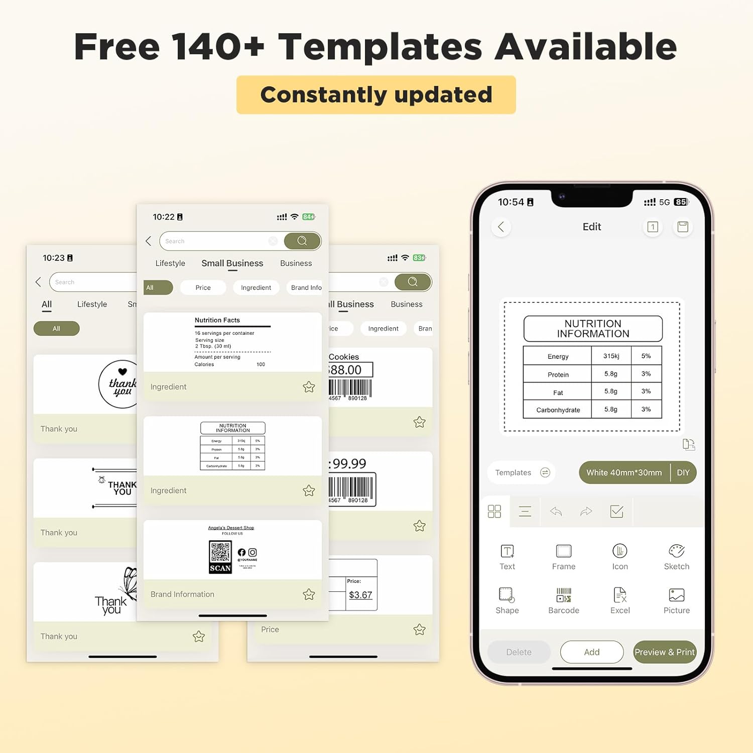 - Versatile App Editing Function: Easily add images from your phone or tablet; customize your labels with 40 fonts, 50 frames, and 650+ icons; all free to use