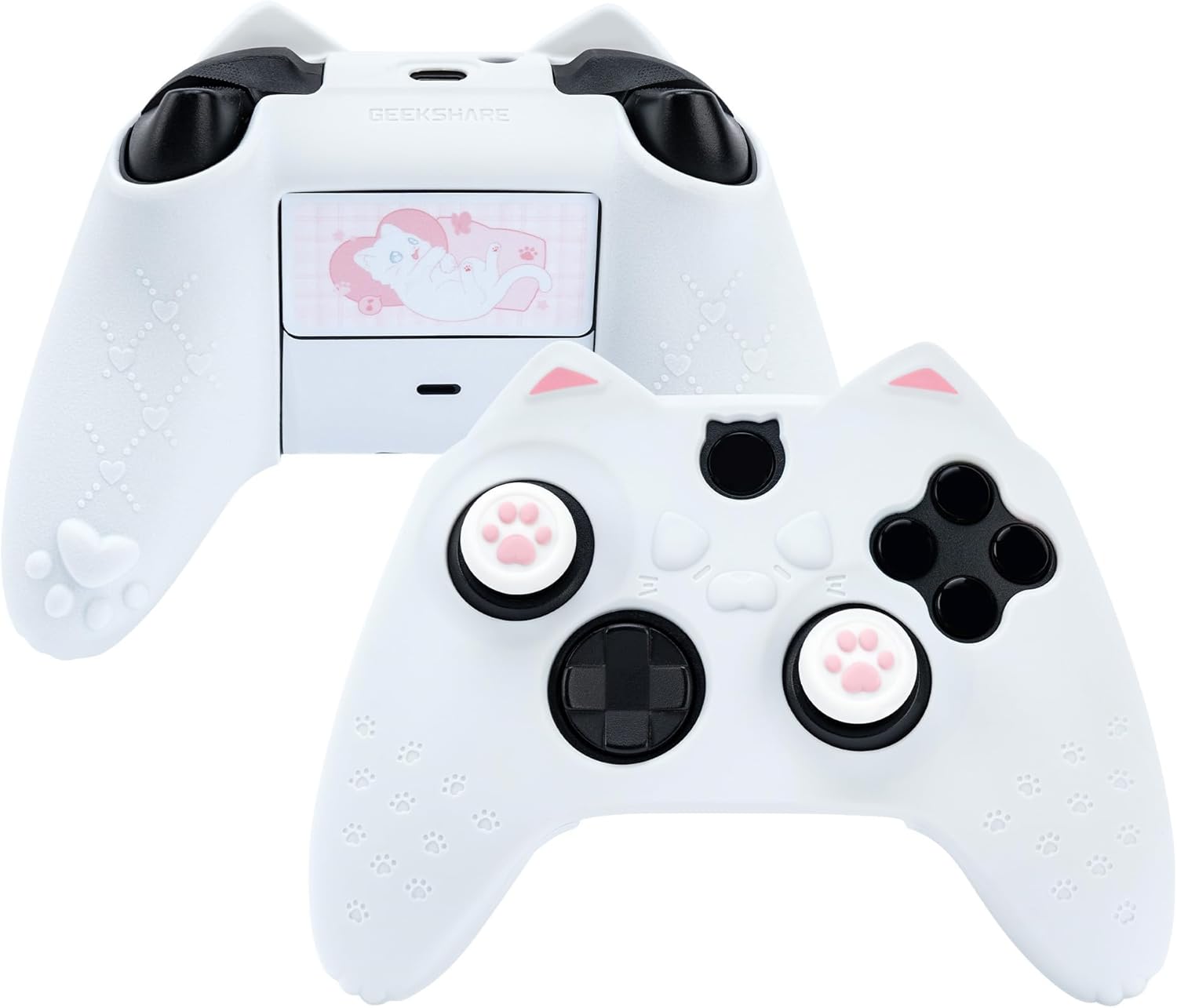 GeekShare Cat Paw Controller Skin Grips Set Anti-Slip Silicone Protective Cover Skin Case Compatible with Xbox Series X Controller with 2 Thumb Grip Caps and 1 Sticker (White)