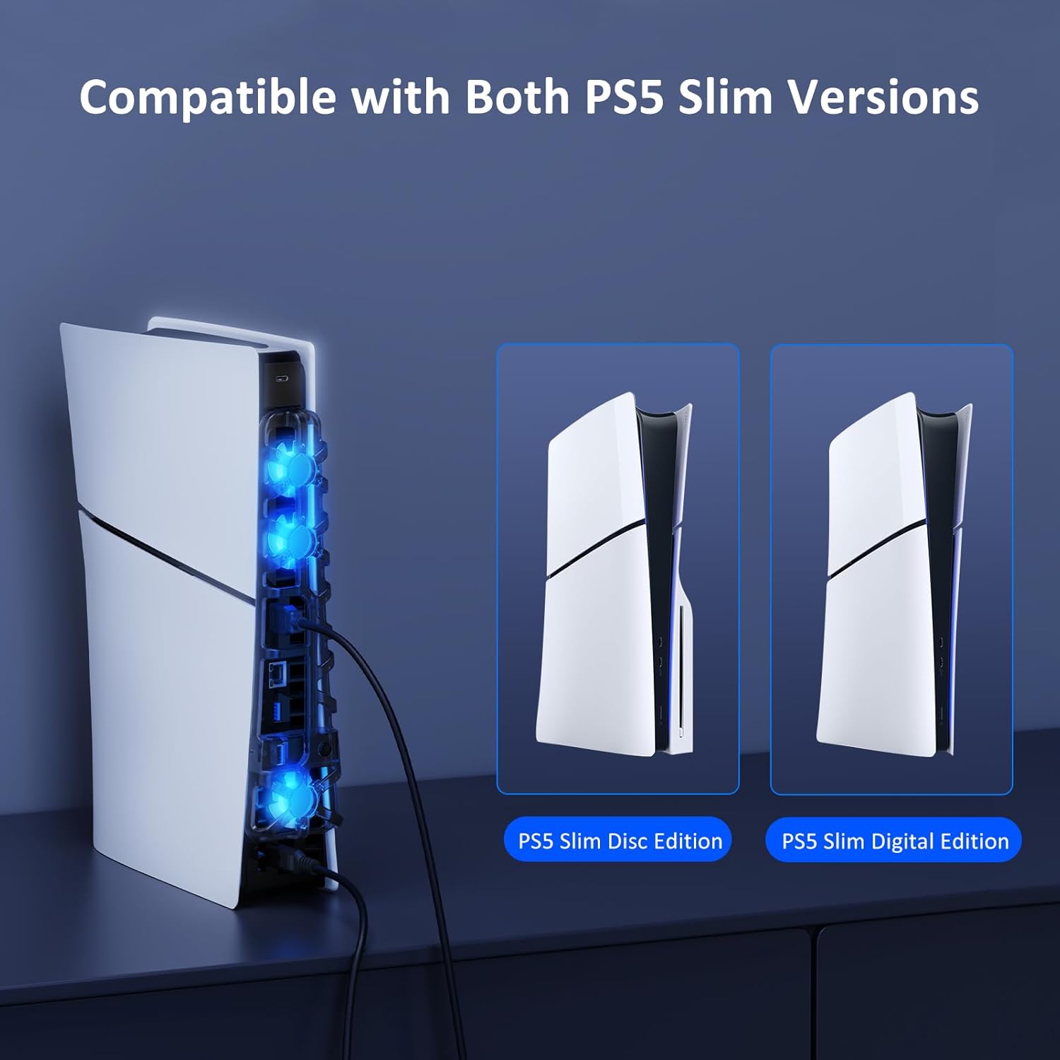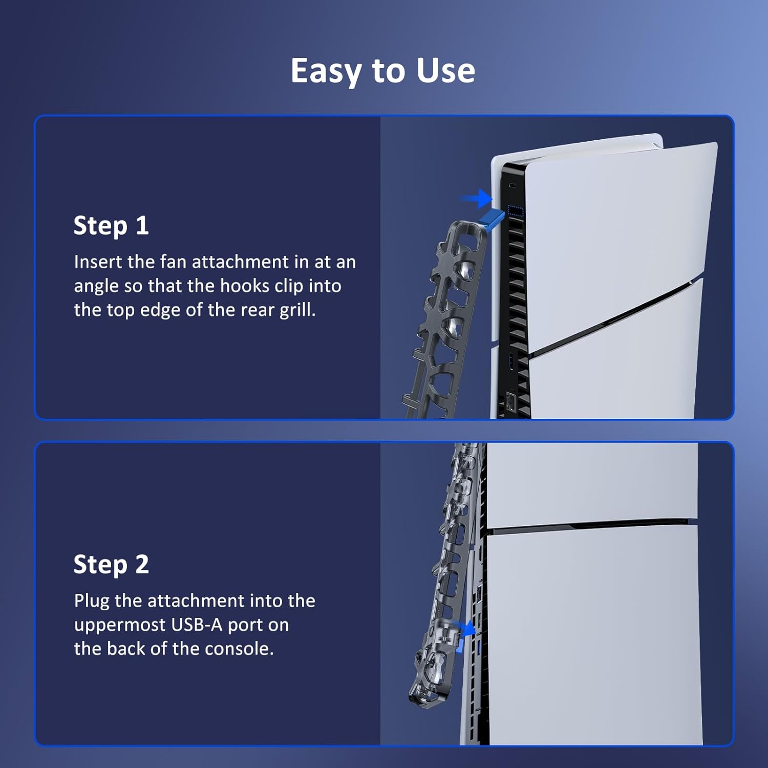 - 【Efficient Cooling System】This attachment includes three fans to rapidly dissipate excess heat from the PlayStation 5 Slim console, enhancing the console's longevity and performance. The fans automatically turn off with the console, minimizing energy wastage when you're not playing.