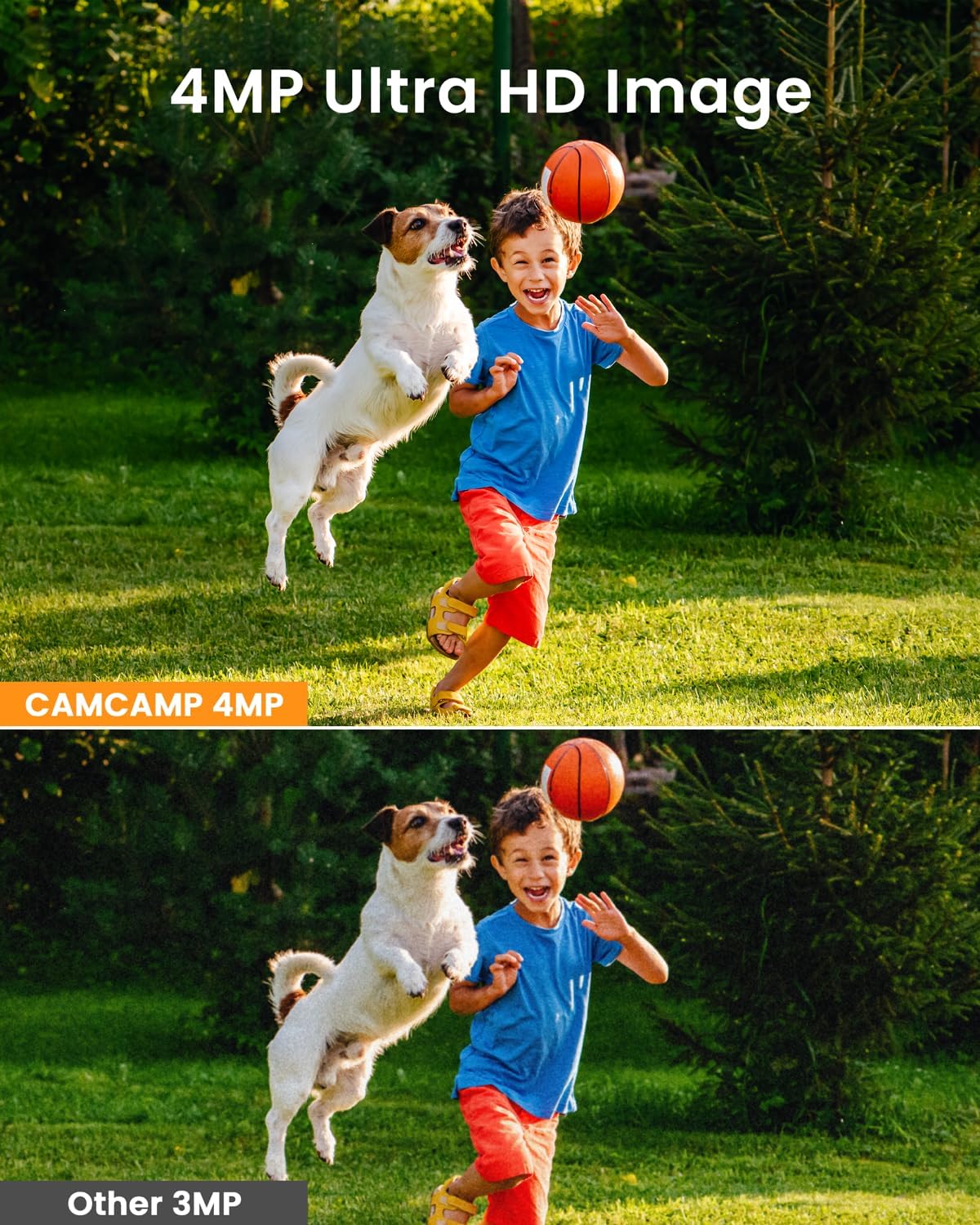 - 4MP HD & Color Night Vision: 2K solar security cameras wireless outdoor captures every vivid details with 4MP (HD 2560*1440P)resolution. get clearer picture quality than 1080P and 3MP. Equipped with 4 spotlights, the camera provides full color night vision in very low light conditions with a visible range of up to 65 feet.