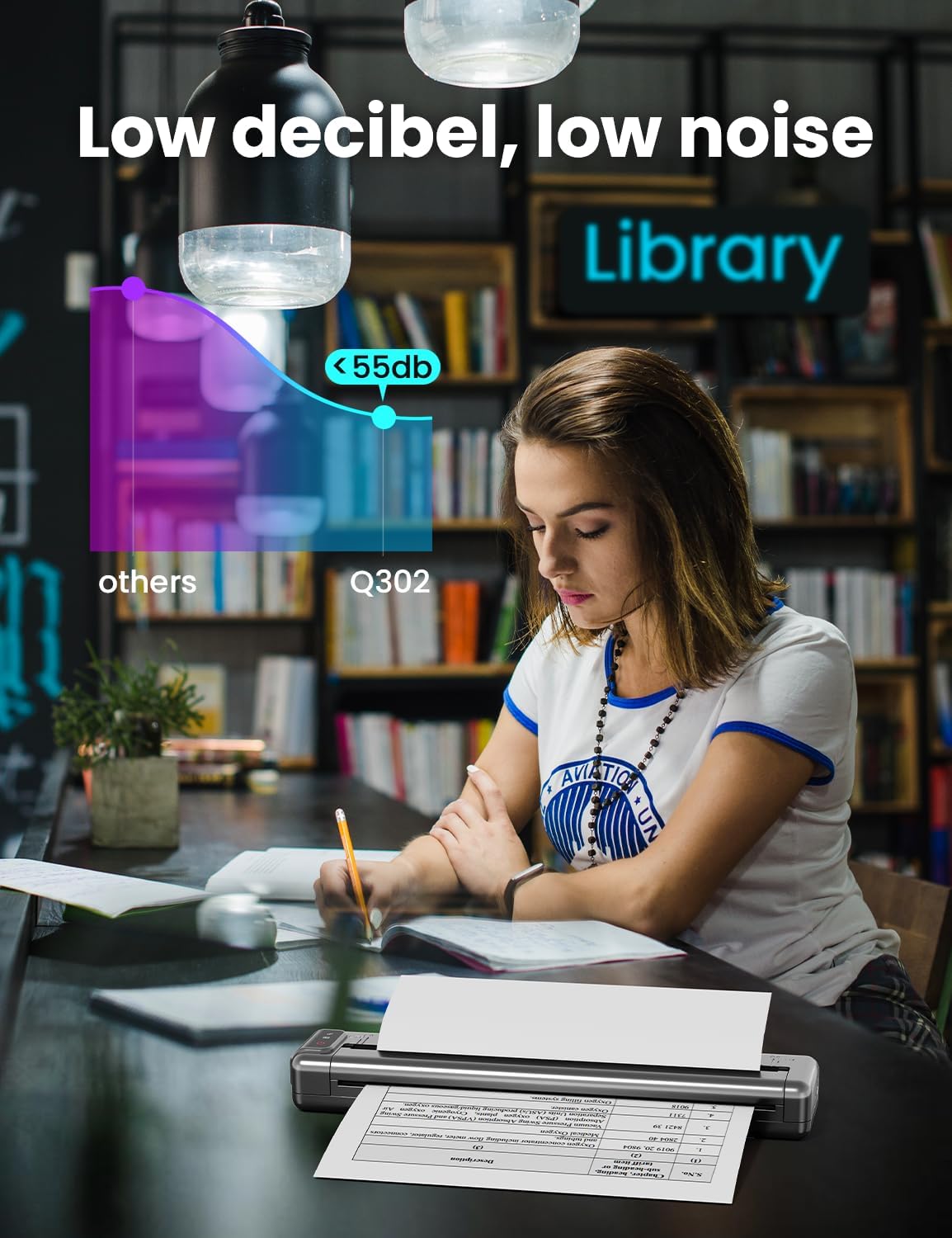 - Phomemo Q302 Thermal Printer - ćSilent Printing Upgradeć: Phomemo Q302 portable thermal printer offer 4 different print sizes for you to choose from: US Letter, A4, B5, A5. The various print sizes can meet the printing needs of different scenarios, whether it is a contract, report or personal documents can be easily dealt with. Phomemo Q302 wireless printer can also do silent printing, as an entrepreneur or businessman, you can use this printer in meetings and other silent occasions, which will bring great convenience to your work