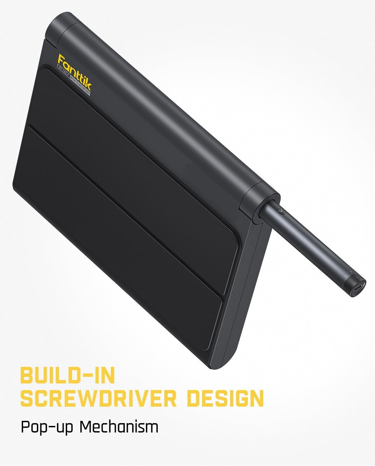 - The All-in-one Workstation: This practical one-piece repair kit takes inspiration from the Magic Keyboard design. It's thoughtfully designed for daily use, featuring a leather mat, a clean bits-shaped logo, and a range of tools suited for precision repairs. The electric screwdriver includes a smooth pop-up mechanism, offering both convenience and reliable performance.