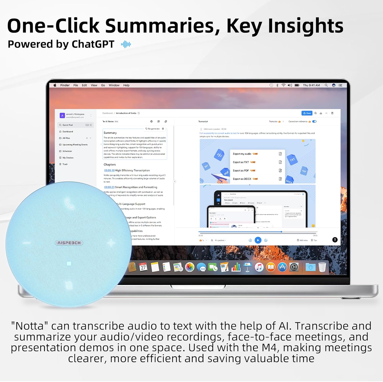 - 【AI Transcription】Use with the "notta" app, it can provide you AI transcription for real-time speech-to-text conversio. It includes real-time recording transcription, transcription of audio files, AI-generated full-text summaries, AI-assisted writing, remote meeting recording, real-time subtitle interpretation and more. Cater a wide range of office needs across multiple scenarios, devices, and formats. Enhance efficiency and intelligentize your meeting experience.