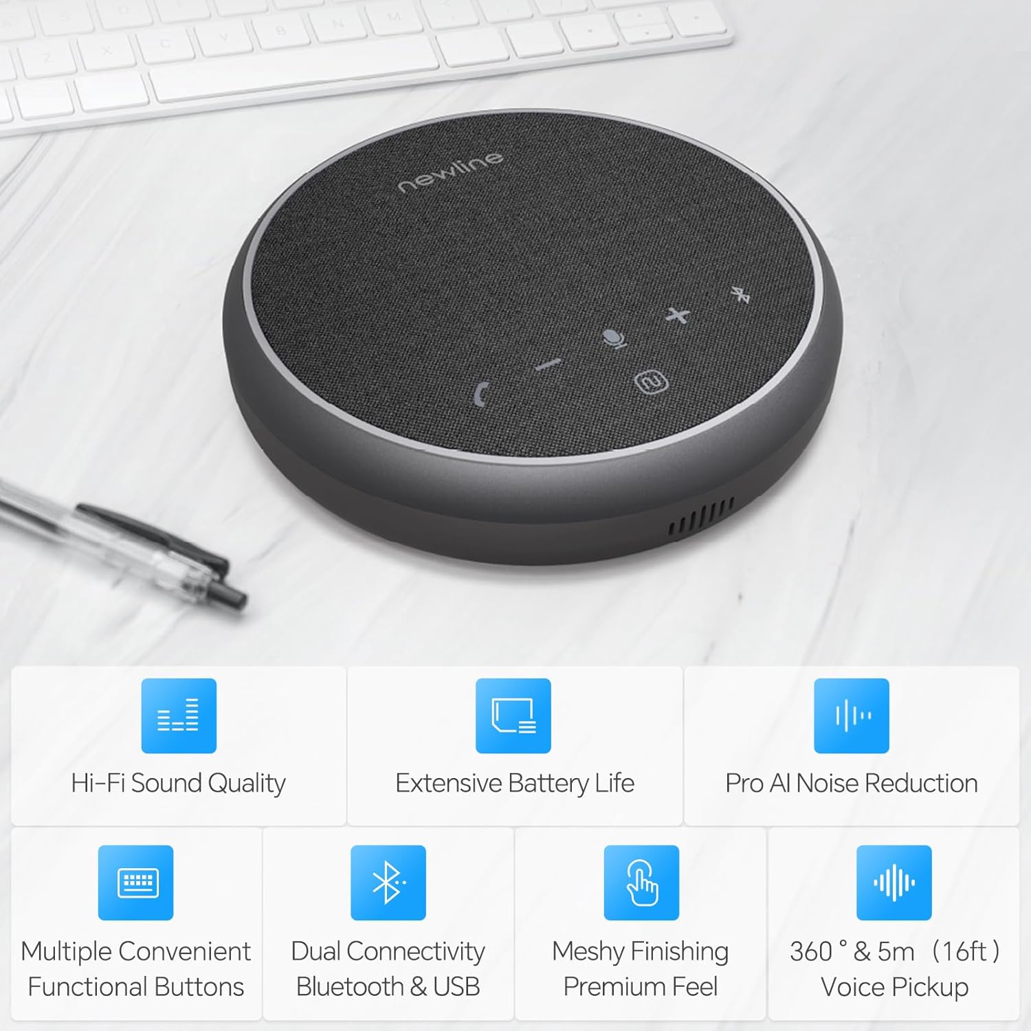 - 360° & 5 Meters (16 Feet) Voice Pickup: 360°omnidirectional and wide-range voice pickup to ensure sound clarity. N newline's conference speaker and microphone is perfect for large conference rooms and Zoom meetings