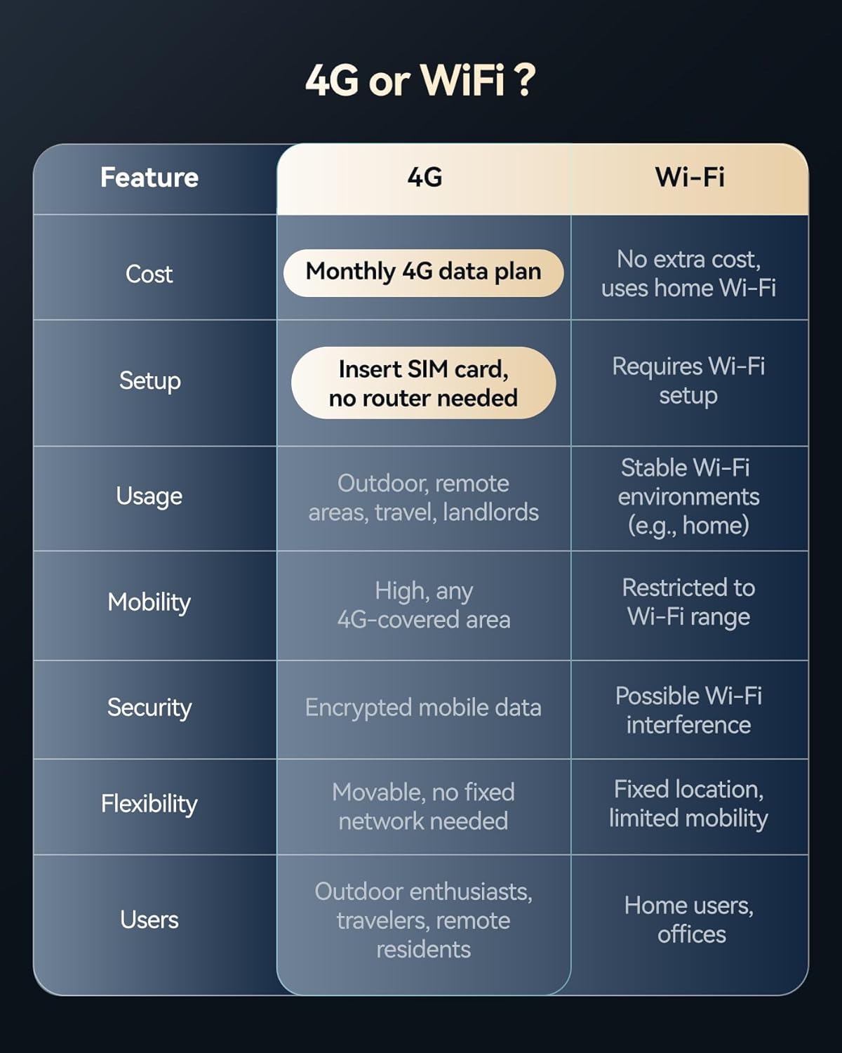 - No WiFi and High Capacity Battery: The 4G LTE cellular security camera, suitable for use in the US, works in areas not covered by WiFi for a dead - end surveillance view. The camera connects using a 4G network. With a built - in 9800 mAh high capacity rechargeable battery. You can easily install it anywhere without WiFi coverage
