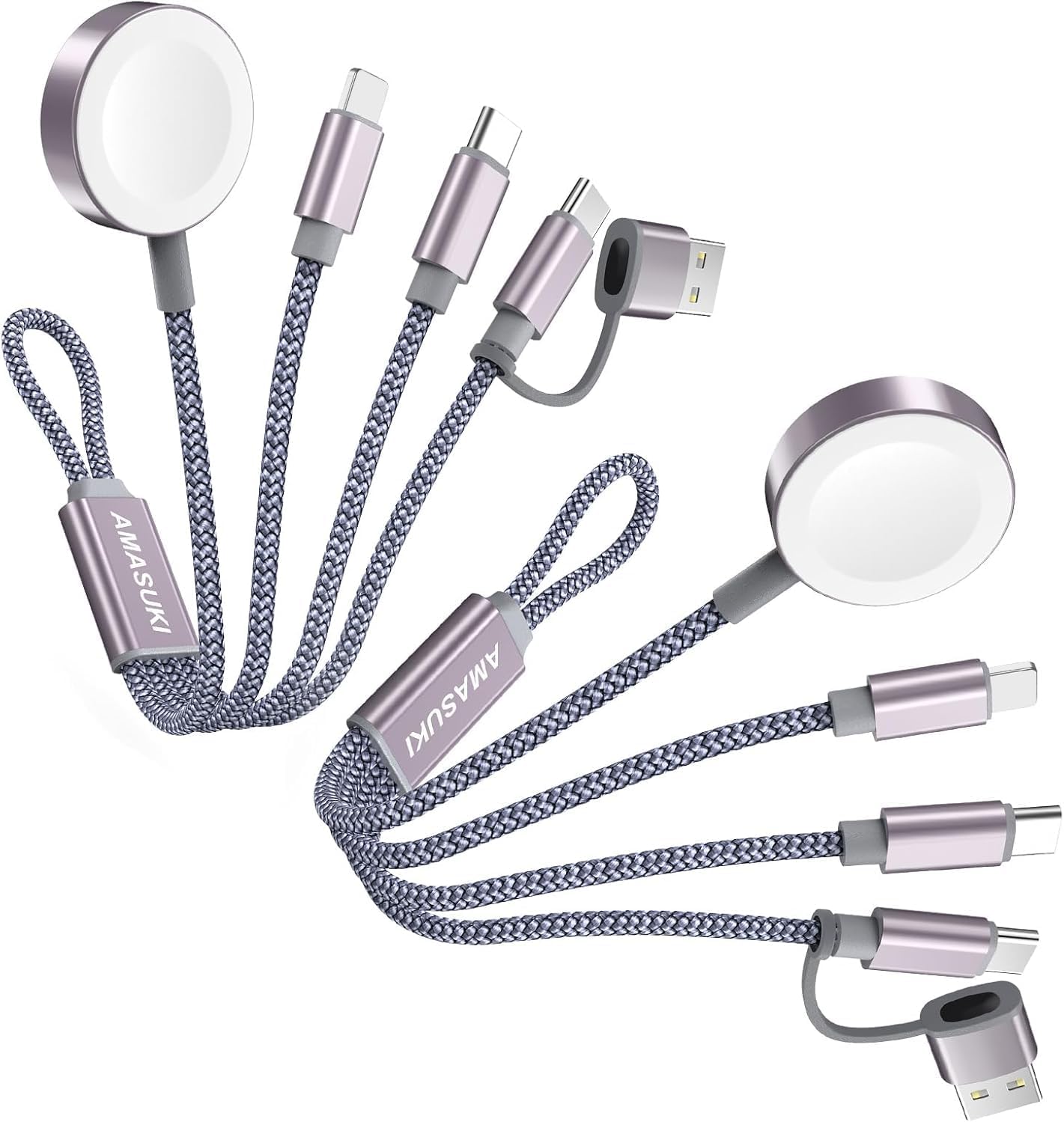 - 🔹【3 in 2 Charging Design】There are 6 charging ways- USB C/A to iWatch charger & USB C/A to L cable & USB C/A to Type C Cable. The multiple charger support simultaneously charge 3 devices with a USB C/A adapter( Not included ) Compatible for all iWatch ultra series 9/SE/8/7/6/5/4/3/2/1,the L-Port is compatible with iPhone14/13/12/Pro/Max/iPad,USB C is for iPhone 15/15 Pro/15 Plus/15 Pro Max,Samsung Galaxy S23/ S23+/ S23 Ultra/S22/ S21/ S20/ S20+,Don't support Samsung Watch!