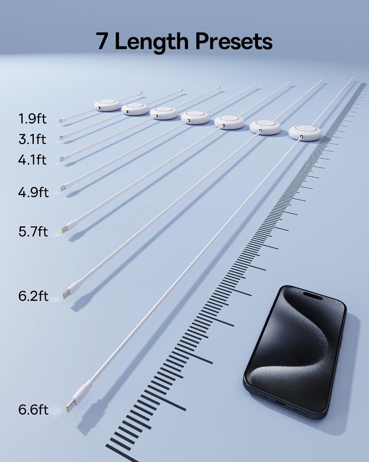 - Longer Length Updated: The 6.6ft Retractable USB C Cable Features a 7-Stage Length Preset, Allowing It to Accommodate Various Charging Scenarios and Ensuring Flexibility no Matter the Distance.