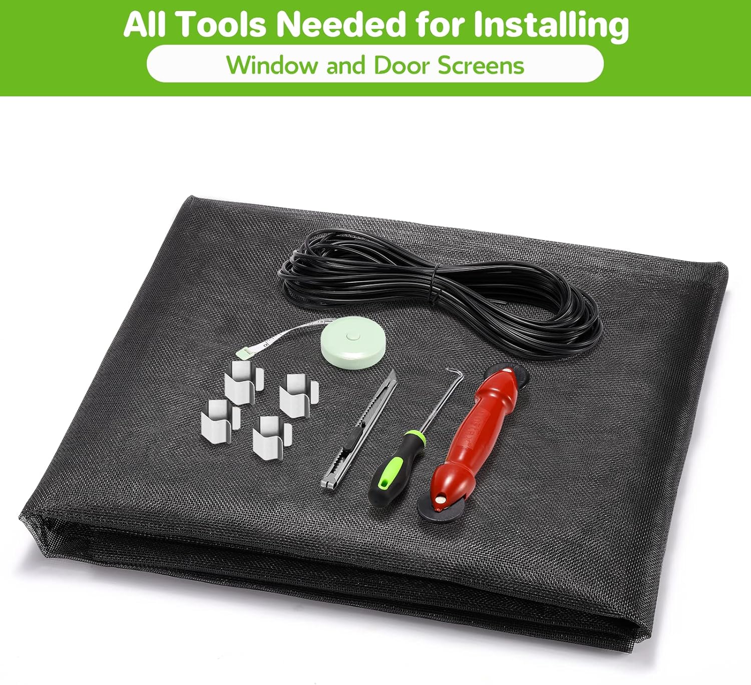 - DIY Window Screen Tool Sets: With all the tool you need, help you to replace the old screen quickly, the sets includes: Screen Roller Tool , 4Pcs Window Screen Installer Clips, Spline Removal Hook, 28ft Screen Retainer Spline, Screen Cutter and Ruler