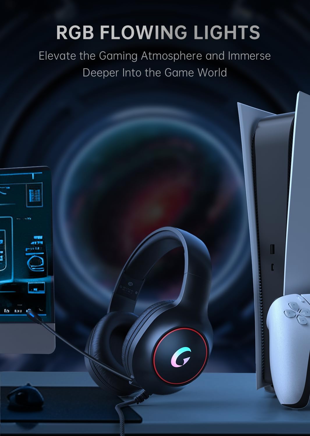 - Syndesmos Professional Gaming Headsets: The xbox headset with dynamic RGB lighting to enhance the gaming ambiance. Designed with ergonomics in mind, they offer a snug fit for optimal comfort. The ps5 headset with mic earmuffs are made of high-quality imitation protein material, increasing comfort by 30% compared to the previous generation. With an 8-level head beam adjustment, it caters to a range of head sizes, ensuring long-term wear without discomfort