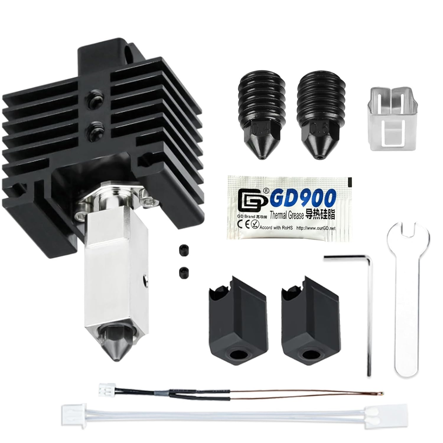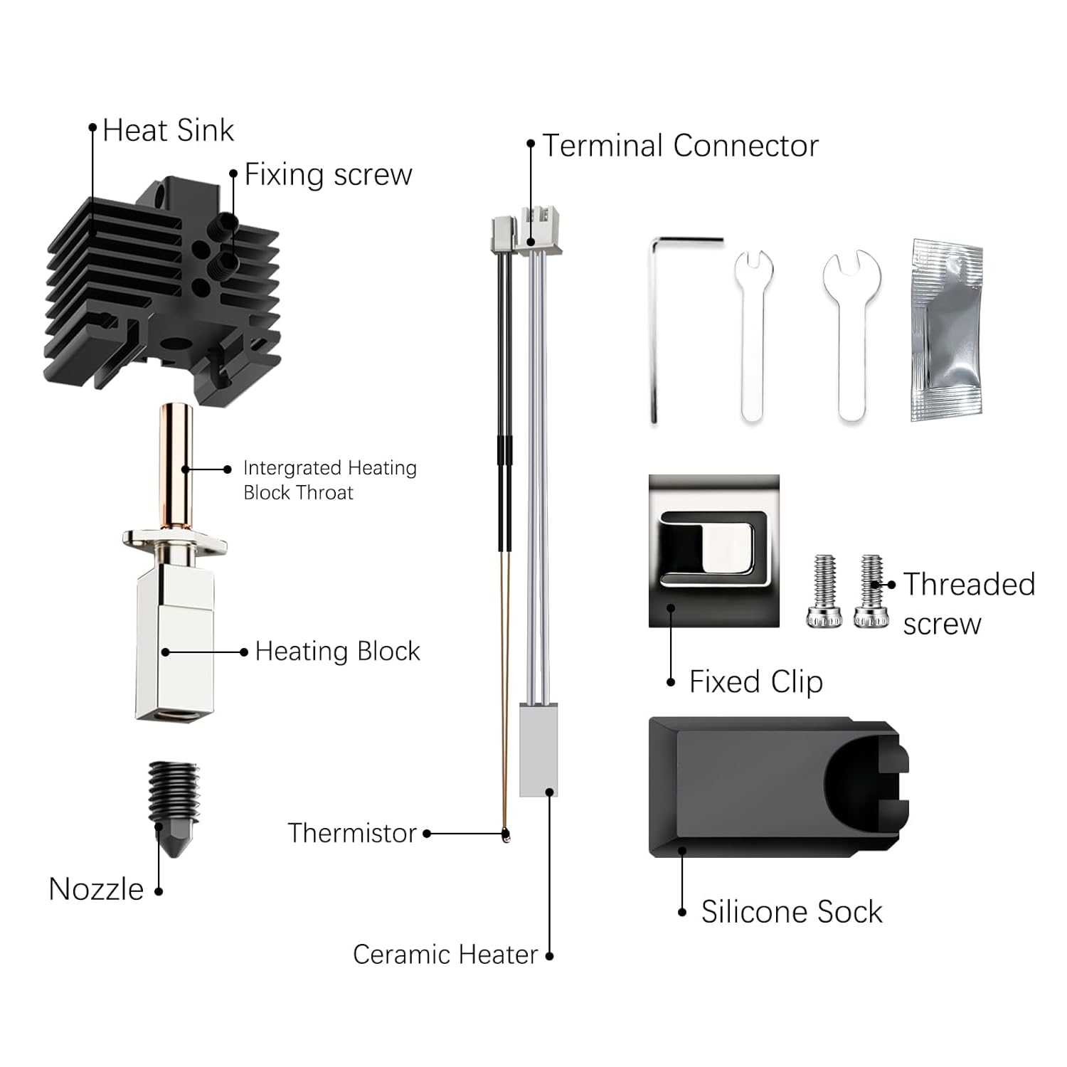 - Packaging: One set hotend with 24V 60W ceramic heater and thermistor,1pc silicone cover as spare part, Equipped with high flow 0.4mm and 0.6mm hardened steel nozzles suitable for Bambu lab 3d printer as backup, the two different nozzles provide you with different printing experiences.This Hotend Kits Fits for Bambu Lab X1/X1C 3D Printer.