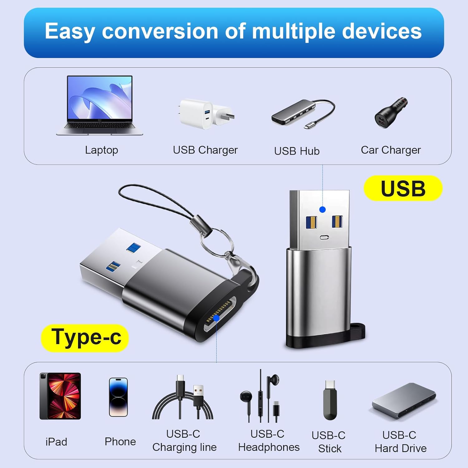 - 【Reliable Quality 】These adapters are made from high-quality, scratch-resistant aluminum alloy,offering excellent wear resistance and heat dissipation. exquisite lanyard makes it more convenient to carry, store and fix, so you don't have to worry about it missing.