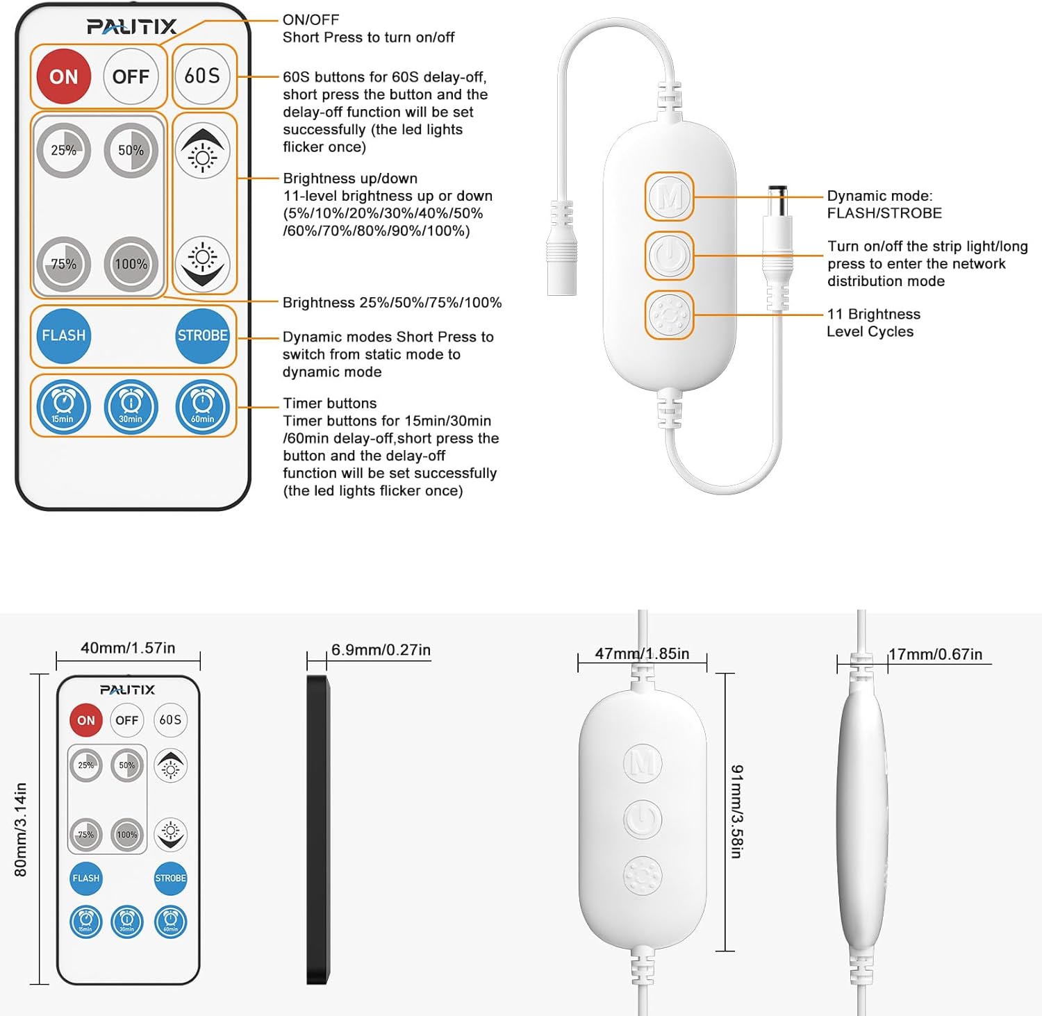 - 【Memory/Timer Function】PAUTIX RF remote dimmer will retain the last setting memory when you turn on the LED light again. Through the timer function, you can set the time (15min/30min/60min) to delay shutdown