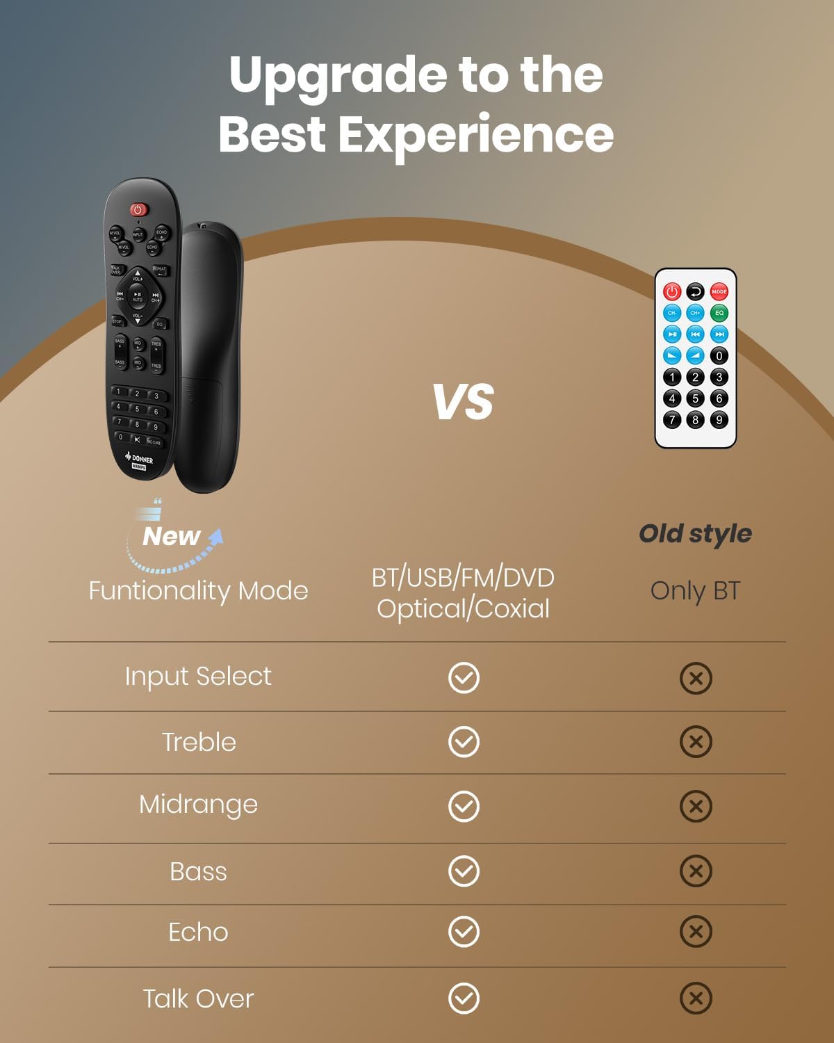 - MULTIFUNCTION REMOTE: Without the limitation of a single function, our amplifier home audio comes with an upgraded remote control that can use the setting functions of treble/ midrange/ bass/ echo/Talkover in any input mode ( Note: Turning off the amplifier via the remote does not cut off the power supply. Please disconnect the power supply via the on/off button on the machine after using to avoid humming noise )