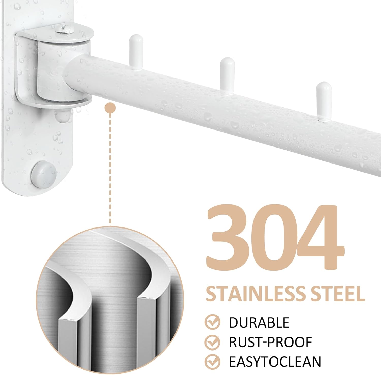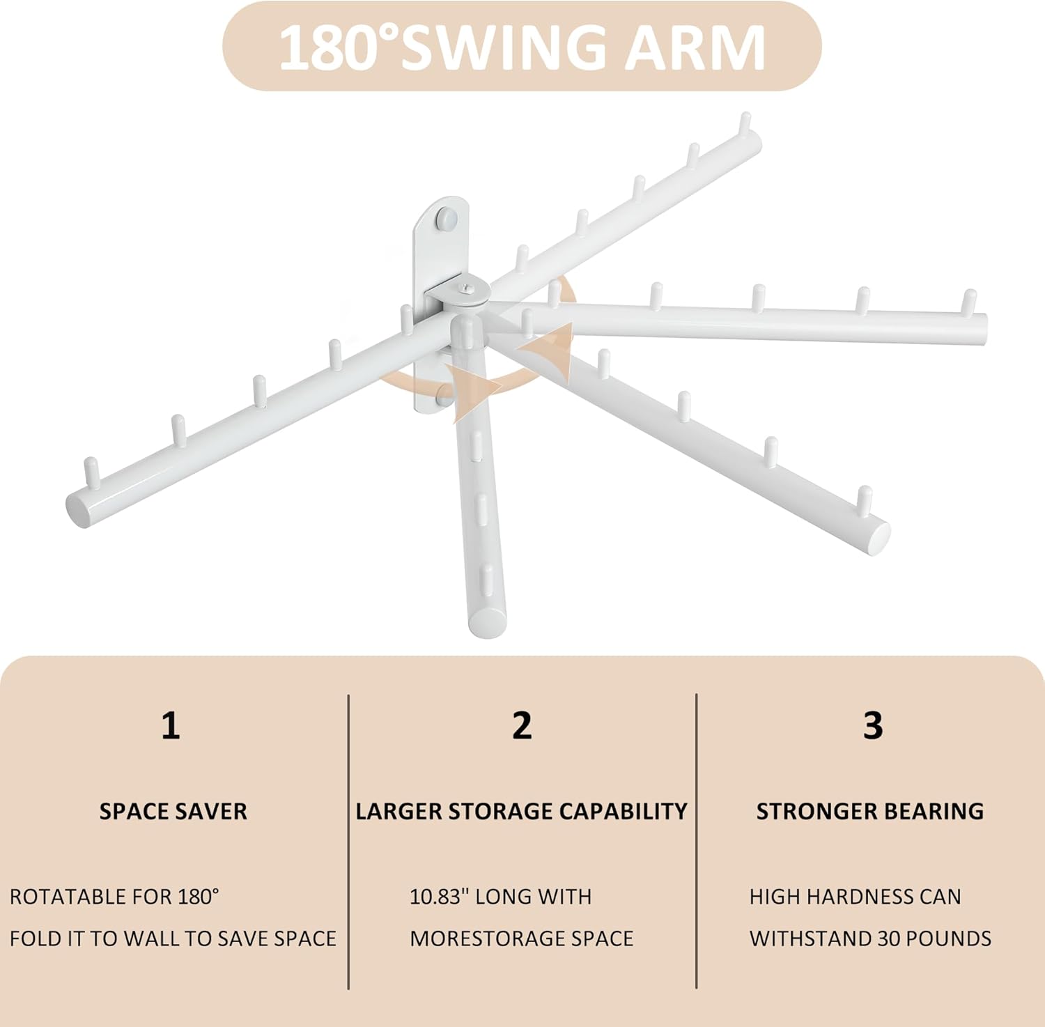 Swing Clothes Hanger Rack,Garment Racks Wall Mounted Clothes Bar-Hanger Holder Hooks Heavy Duty Folding Drying Rack Space Saving Clothing Hanging System Closet Storage Organizer,White Finish