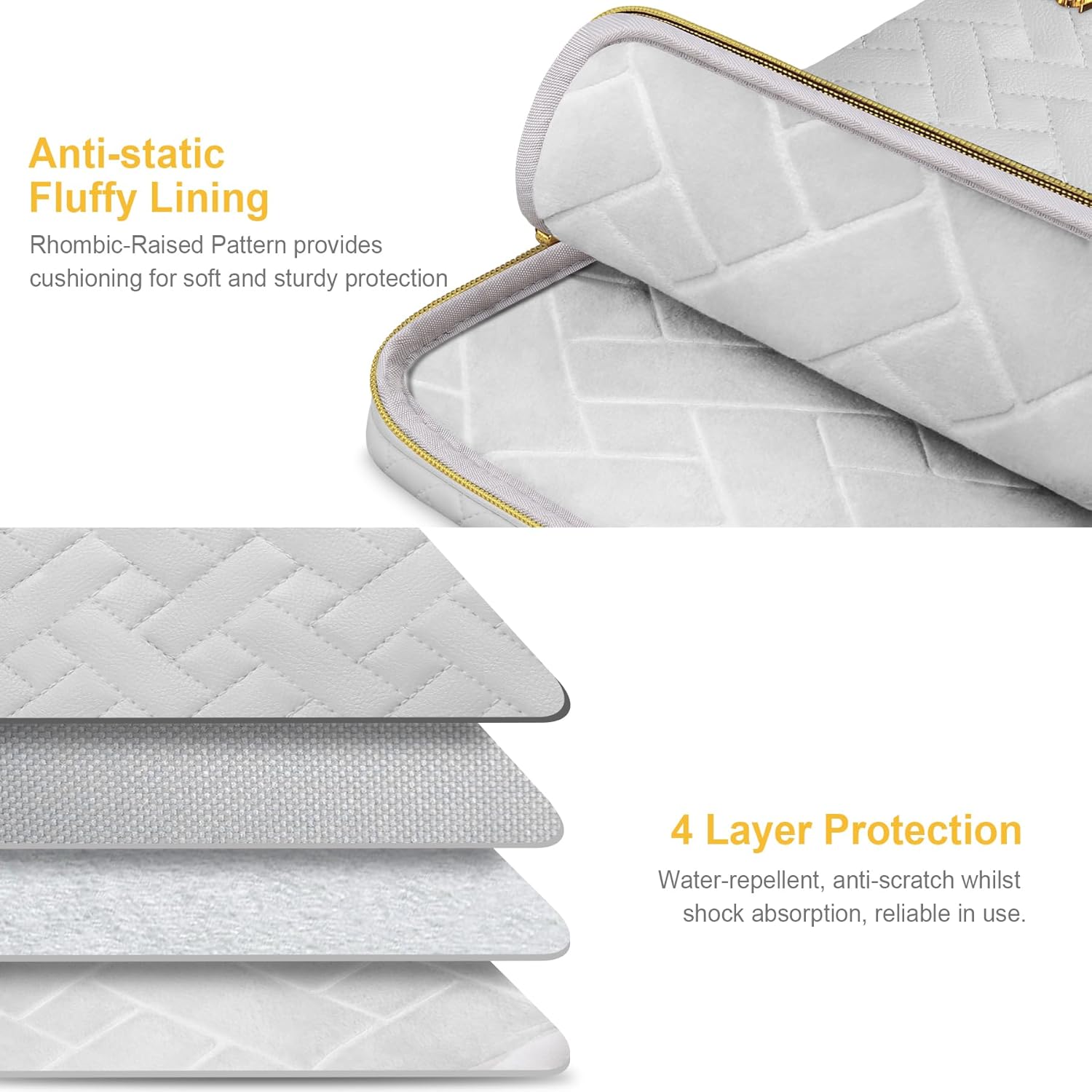 - Anti-static Rhombic-Raised Pattern Fluffy Lining: Ultra-soft velvet lining of the laptop sleeve case bag delivers antistatic property to prevent the creation of static electricity, minimize the risk of static-related damage, enhances your device longevity. The cushy velvet layer is also designed with Rhombic-Raised pattern which is anti-scratch and shock absorption guarding against scratches and damages, enhance laptop storage comfort, offer soft and sturdy protection.