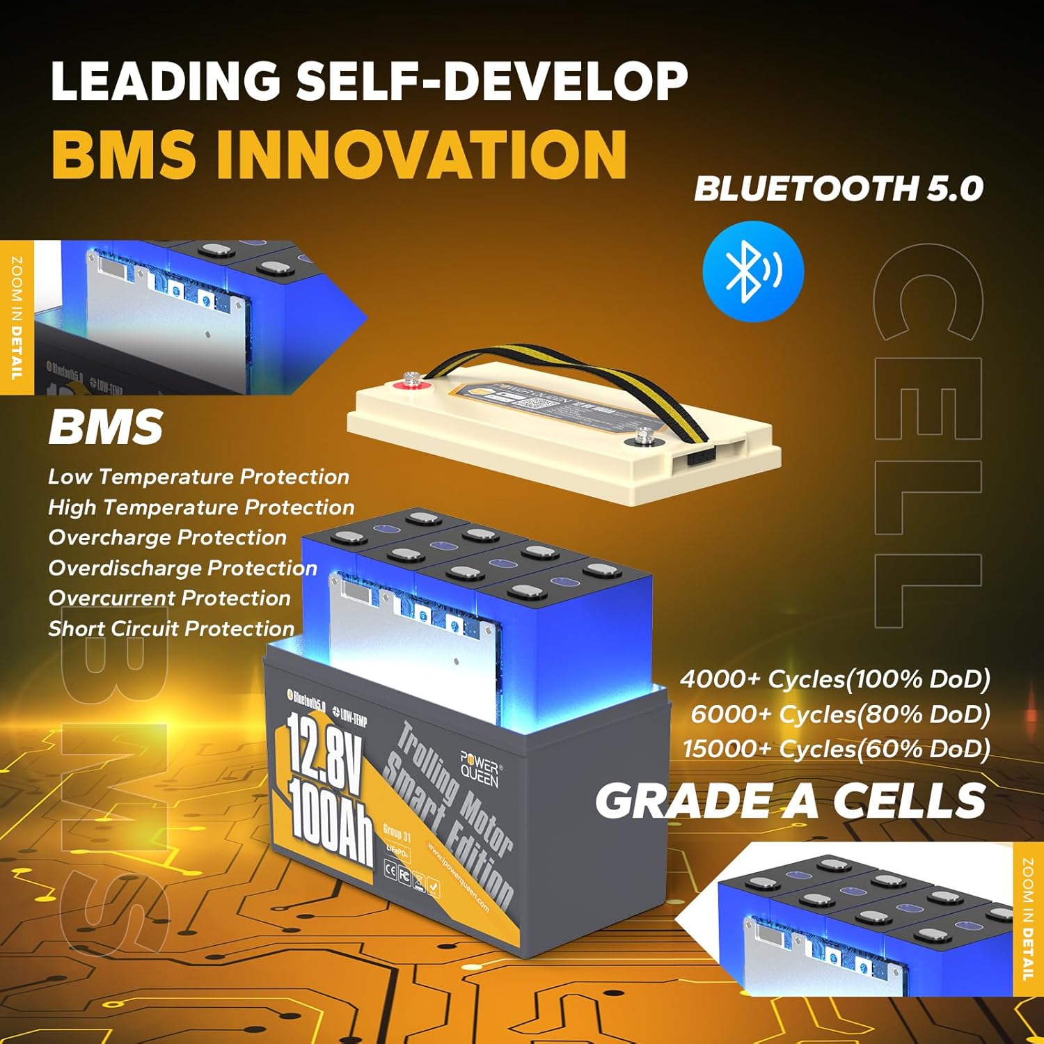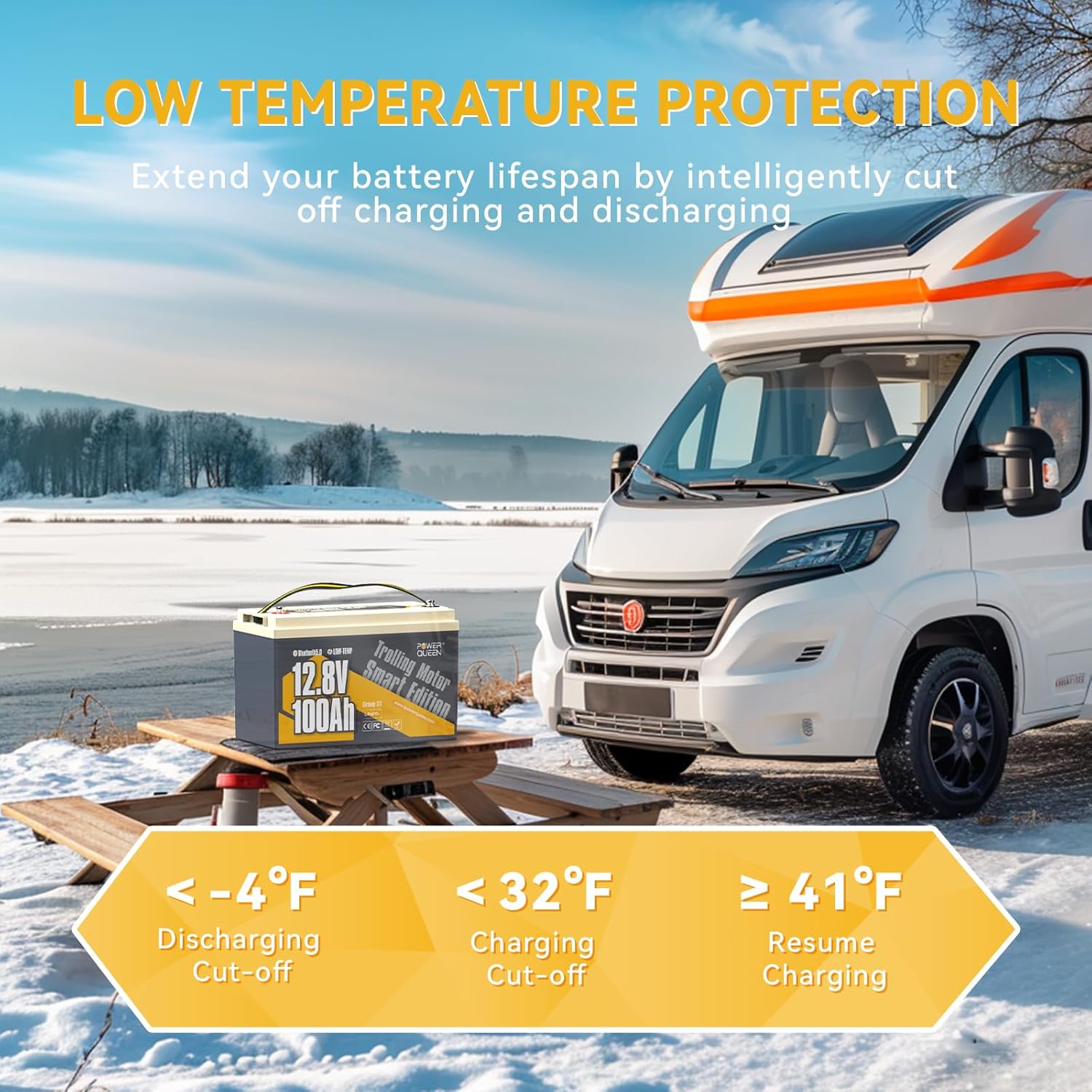 - ăExtra Protection BMS & Low Temp Cut-offăOur advanced BMS offers comprehensive protection against overcharge, over-discharge, over-current, short circuit, over-temperature, and low-temperature conditions. Maximize your battery's lifespan and charging efficiency with low-temperature charging cutoff protection, ensuring safety and reliable power even in the coldest conditions