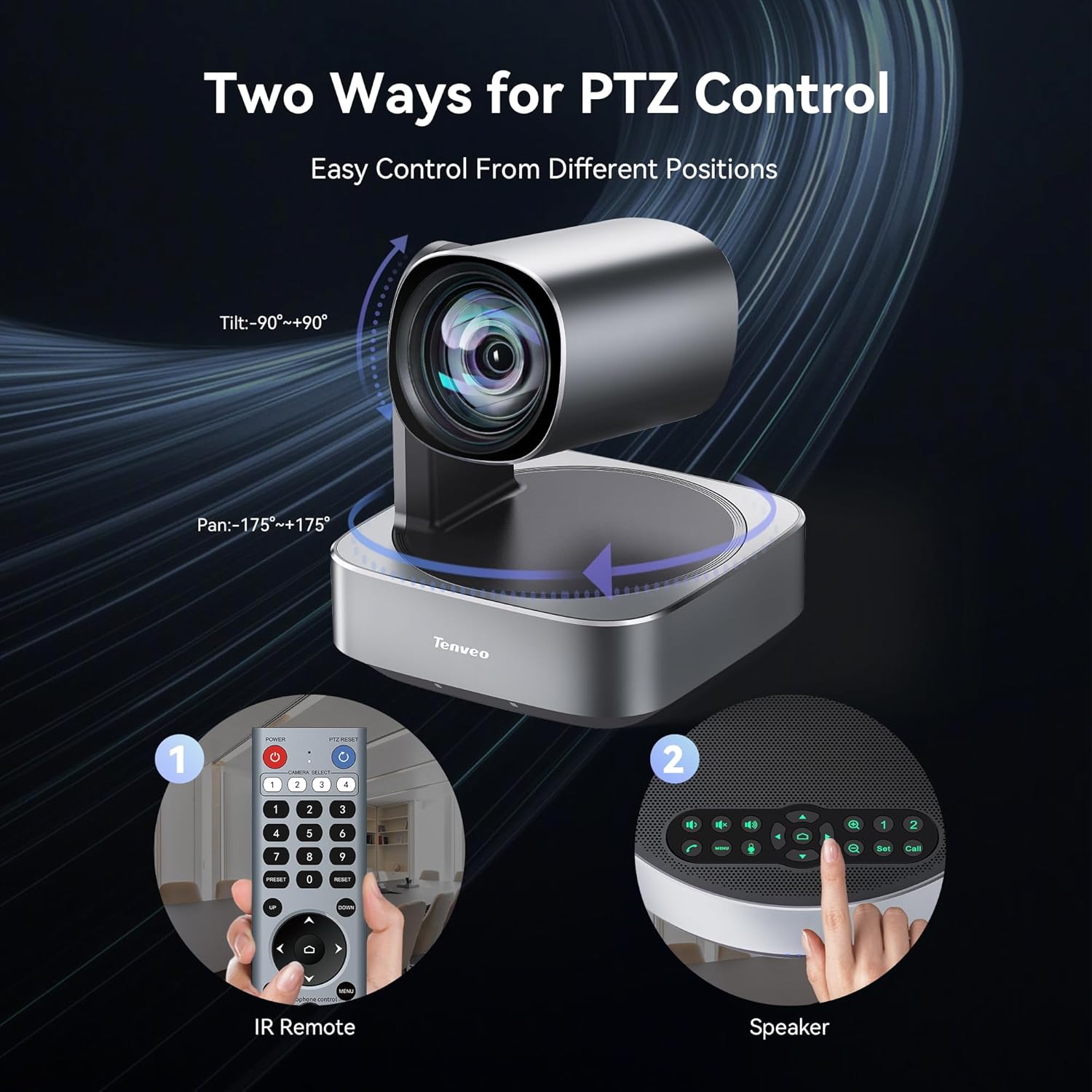 - โก๏ธใ๐๐ญ๐ฎ๐ง๐ง๐ข๐ง๐ ๐๐ ๐๐ข๐ฌ๐ฎ๐๐ฅ๐ฌ & ๐๐ข๐๐ ๐๐ง๐ ๐ฅ๐ ๐๐๐ง๐ฌใTenveo 4K PTZ Camera Bundle Video Conferencing System features an advanced 1/2.8-inch CMOS sensor for exceptionally true-to-life 4K visuals. Its 12x optical zoom captures every detail, from wide panoramas to subtle expressions, with zero image distortion. Enjoy a wide 78ยฐ viewing angle, smooth 350ยฐ pan, 180ยฐ tilt and precise zoom. The conference room camera supports 10 preset positions via the remote, ensuring every nuance of your meeting is perfectly visible.