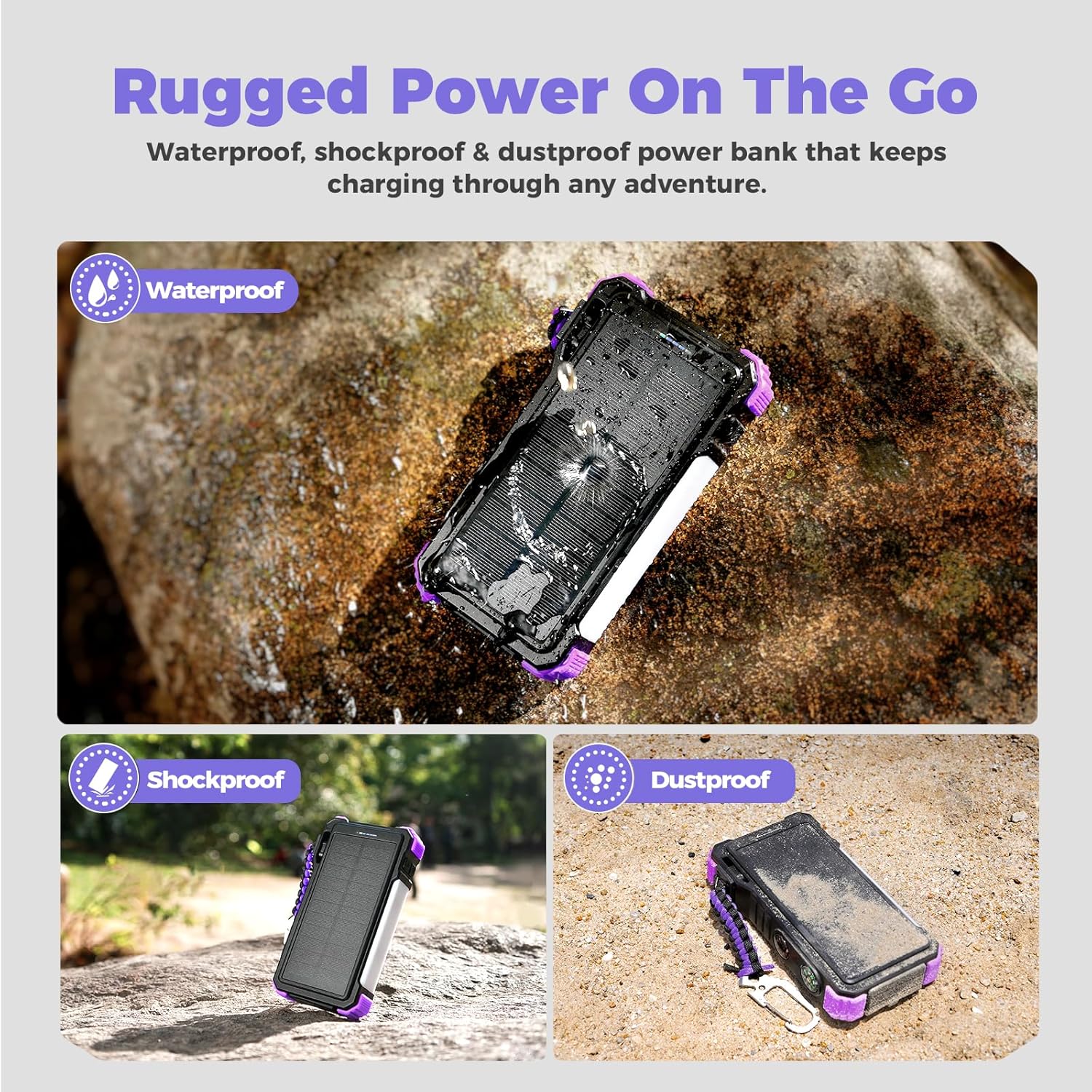 - Durable And Adventure-Ready: Built to withstand anything nature throws at it, the BLAVOR solar charger power bank is a true warrior. Its flame retardant ABS+PC shell and waterproof silicone protection make it waterproof, shockproof, and dustproof, ensuring it can handle extreme conditions with ease. No matter where your adventures take you, this charger is up for the challenge