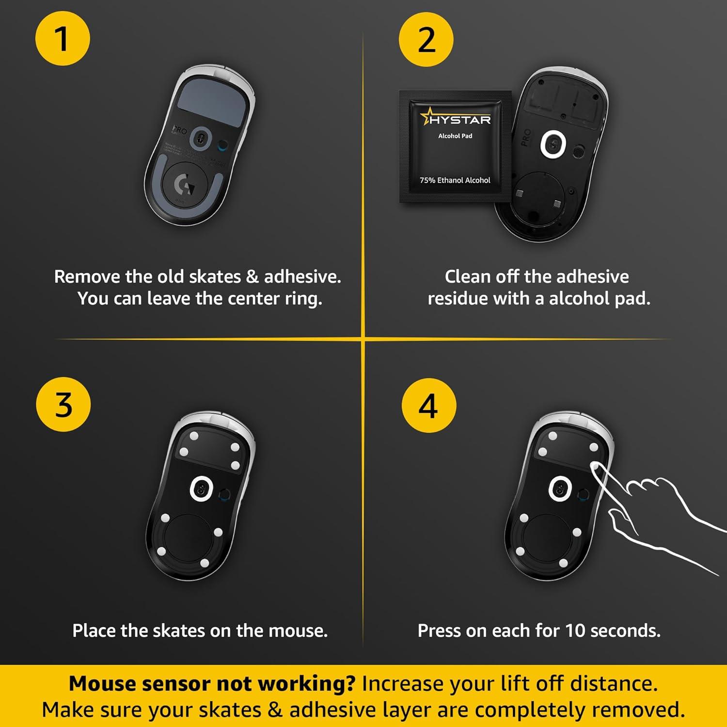 - High-Density PTFE: Made from premium grade hardened PTFE, these skates are more durable than typical Virgin PTFE, extending their lifespan significantly on glass mousepads.