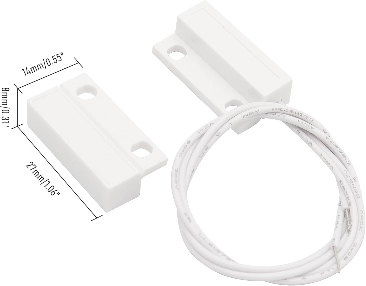 Magnetic Reed Switch Wired Surface Mount Normally Closed NC Contact Sensor Alarm Magnetic Door Switch with 2 Wires, ABS, MC-38
