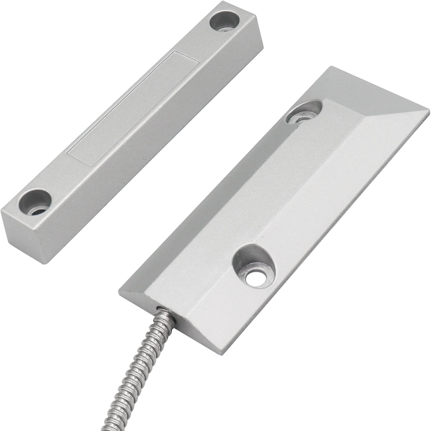 Magnetic Reed Switch Wired Surface Mount Normally Open NO Contact Sensor Alarm Magnetic Door Switch with 2 Wires, Zinc Alloy Sliver, OC-55