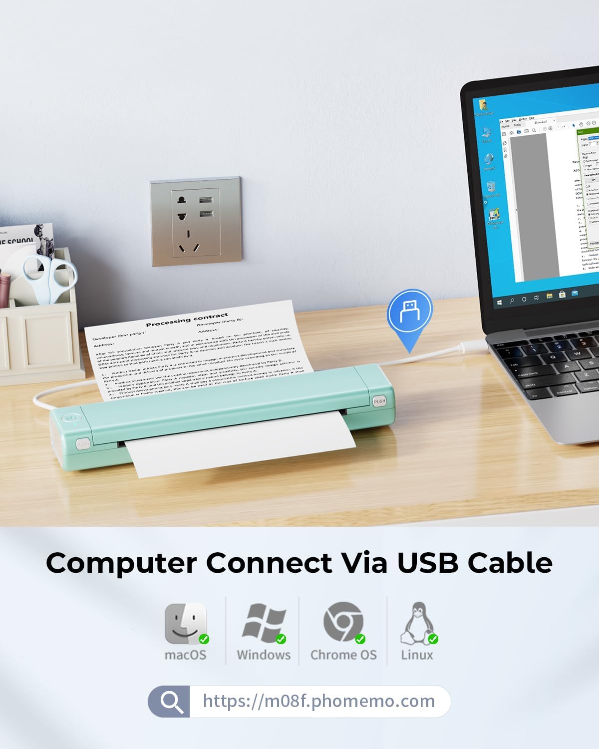 Phomemo M08F Portable Printers Wireless for Travel, Thermal Printer Support 8.5" X 11" US Letter Thermal Paper, Bluetooth Inkless Printer Compatible with iOS, Android, Laptop for Travel, Office, Home
