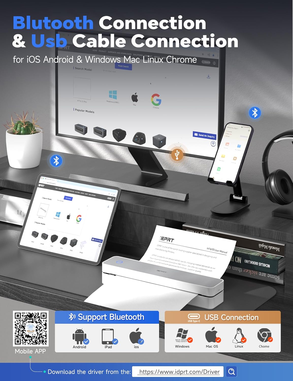 - ✅COMPREHENSIVE COMPATIBILITY:Pair with smartphones via Bluetooth in 90 seconds – no tech degree required. The free HerePrint app lets you print photos directly from Instagram or turn handwritten notes into PDFs. For laptops, just plug in the USB cable: it acts like a regular printer for Word docs, Excel sheets, or even IKEA instruction PDFs