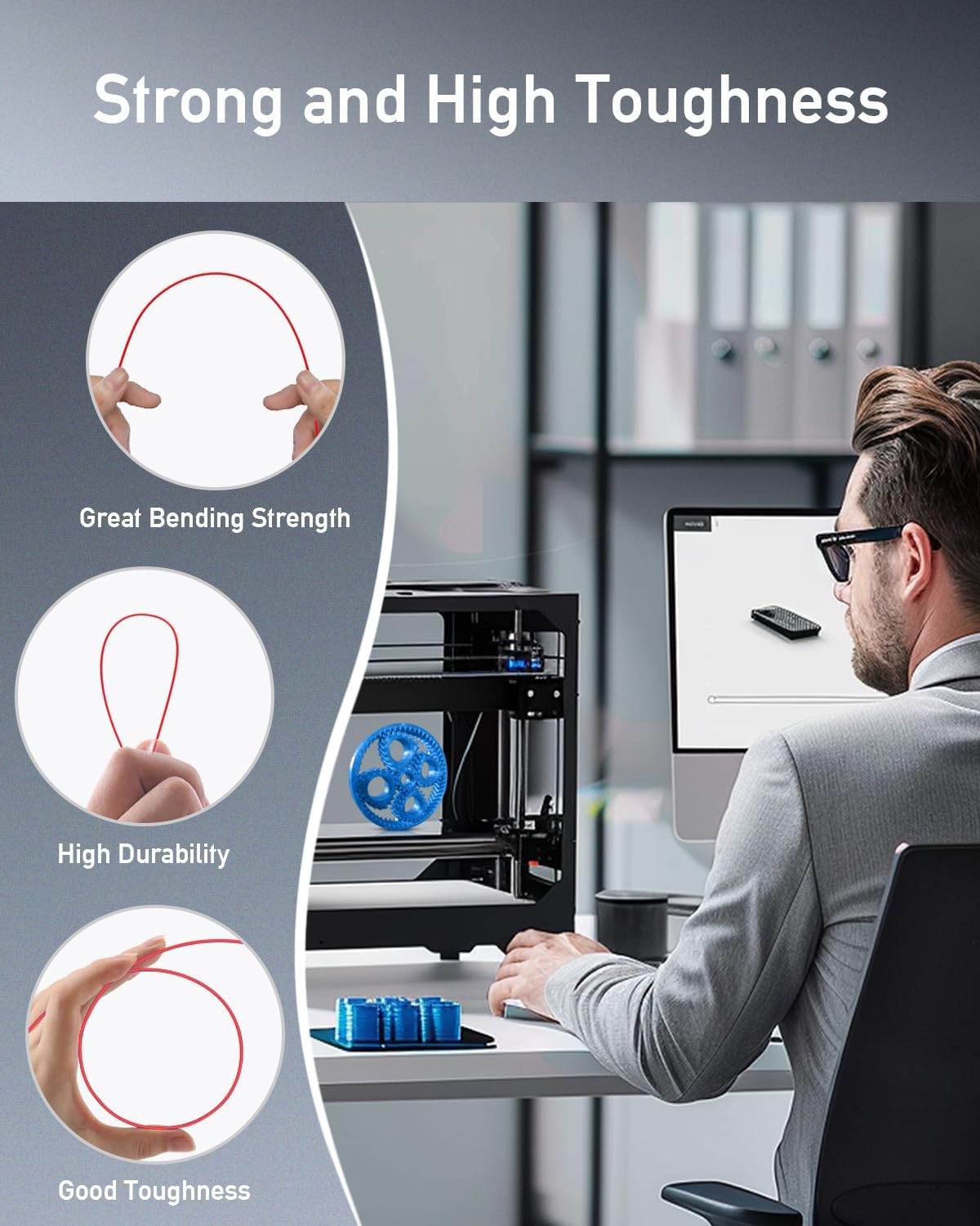 - ⑤【High Impact Strength】With its high impact resistance, PETG is perfect for printing parts that need to endure bumps and drops, ensuring long-lasting performance without cracks or breaks.