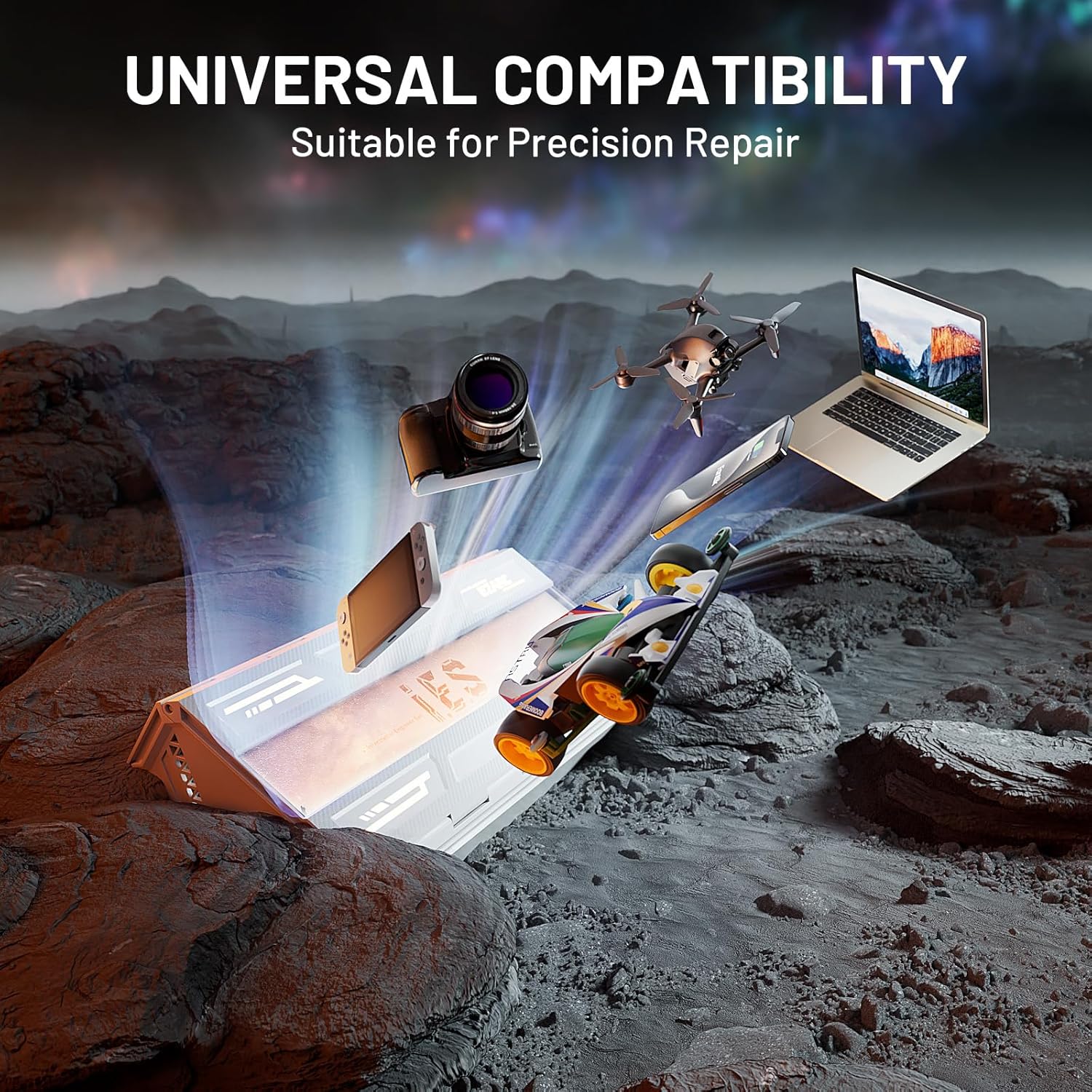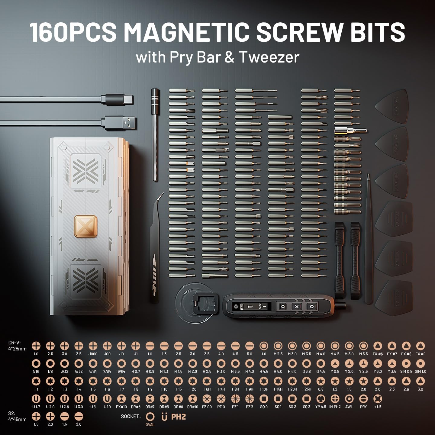 - 【160 Bits +8 Types Fix Tools】Equipped with 160 precision CR-V steel screw bits that are corrosion-resistant, strong, and durable, this kit also includes 4 long S2 steel bits for enhanced performance. It comes with 8 essential electronic maintenance tools, such as an opening pick, ESD tweezers, pry bar, extension shaft, and suction handle. Compatible with most electronic devices, including cell phones, laptops, gaming consoles like Switch, and cameras.