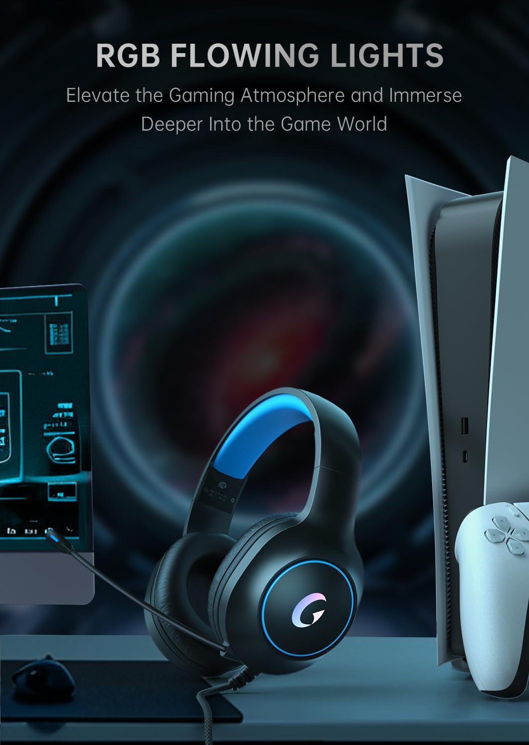 CM7002 Gaming Headset for PS5, PS4, PC, Mac, Switch, Xbox Series, Surround Sound RGB Gaming Headphones with Noise Canceling Microphone, 50MM Dynamic Drivers, 3.5MM Audio Jack, Blue