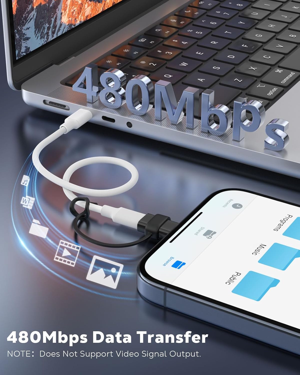 - Support Charging and Data Transfer:This USB C to iPhone adapter enables charging and 480 Mbps data transfer speeds, making iPhone or iPad directly compatible with USB C to USB A cables and USB C to USB C cables. Save the hassle of carrying around extra data cables.