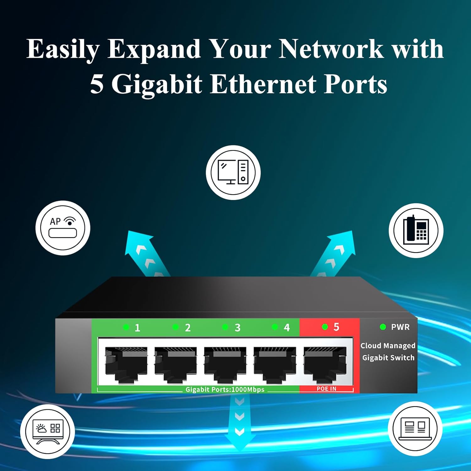 - Easy Smart Management via Web Interface or Free Software:Effortlessly manage and configure your network through a user-friendly web interface or free software. The 5 port gigabit switch allows for comprehensive remote or local management, making network administration a breeze.