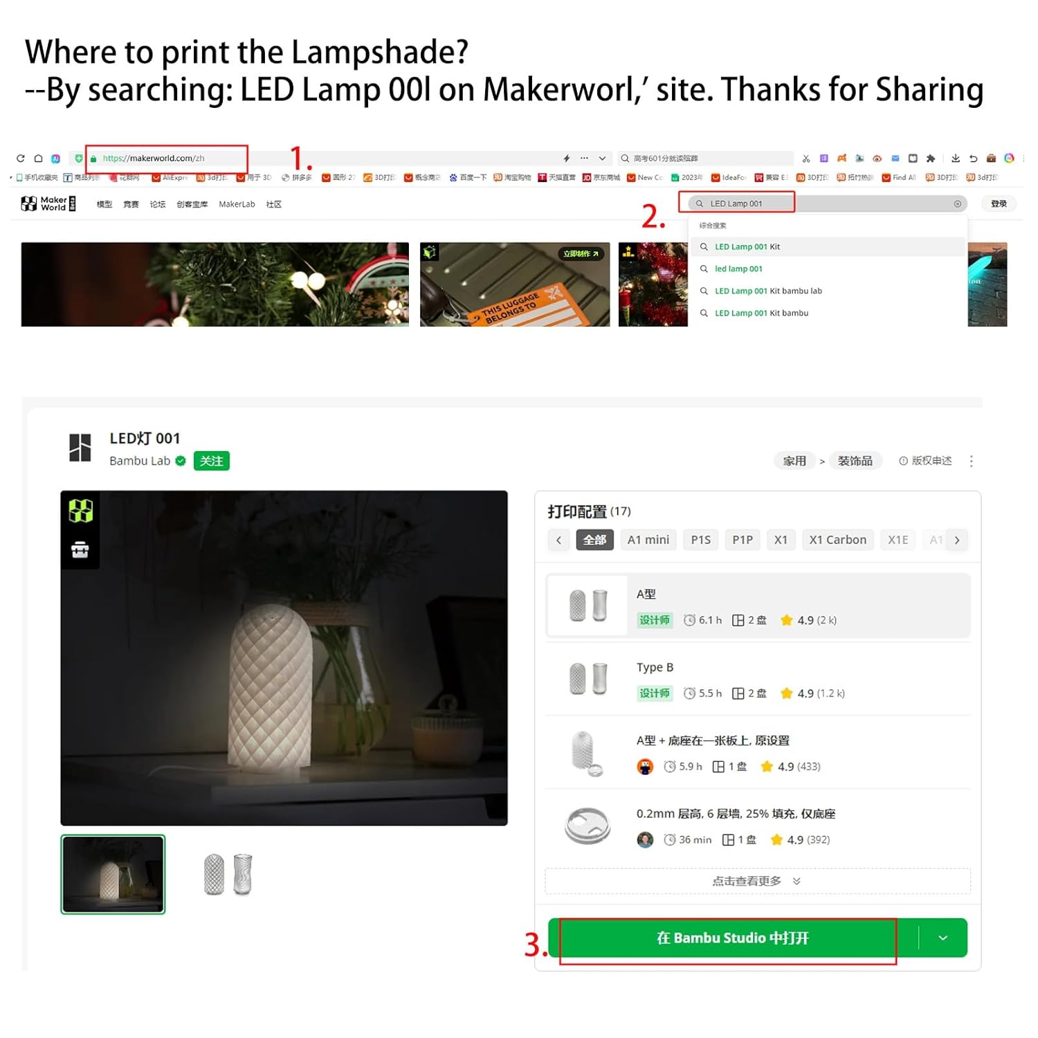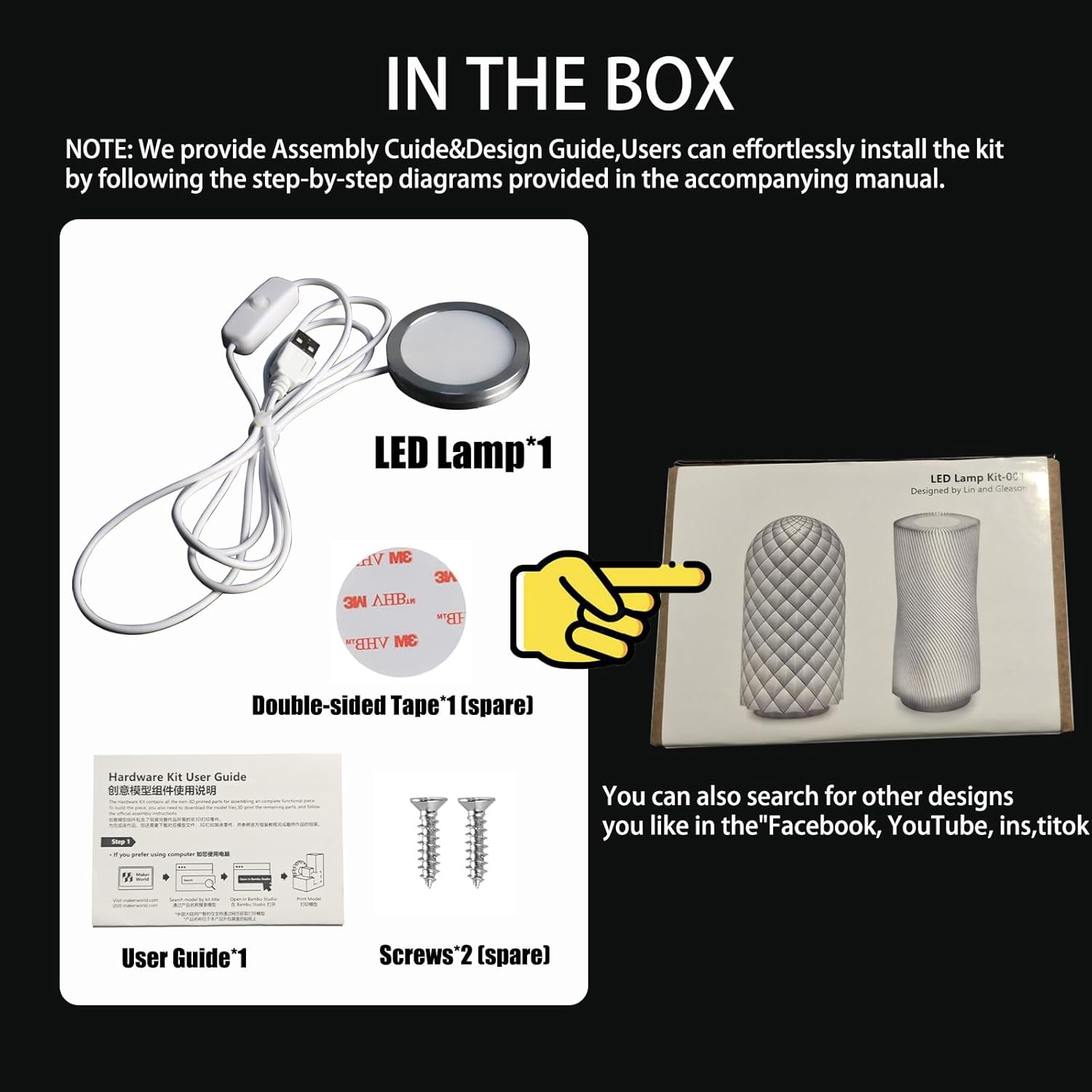 - 【DIY your Own Lamp】Creating your own Lamp Kit is an excellent way to showcase personal creativity. You can incorporate your favorite unique design elements into the lighting fixtures to create a unique piece that showcases your personality. We provide the design outline of 3D printed parts that match the hardware kit as the starting point for your design creation. In addition, you can also search for inspiration on platforms such as Facebook, YouTube, Instagram, TikTok, etc. to find other designs that attract you and inspire your creative spark. By combining these resources, you can freely unleash your creativity and create your own unique LED lighting fixtures.