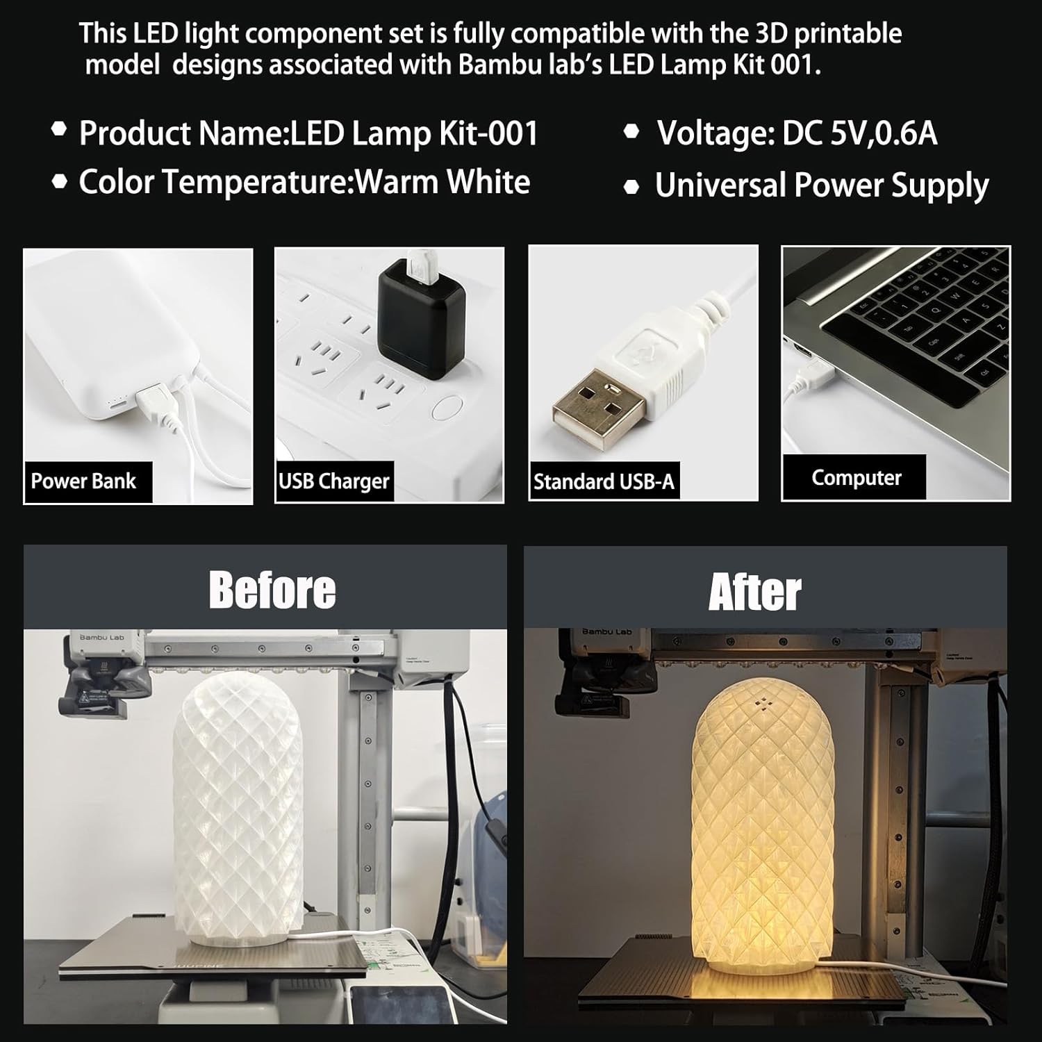 - 【Compatibility Note】: This LED light component set is fully compatible with the 3D printable model designs associated with Bambu lab's LED Lamp Kit 001.