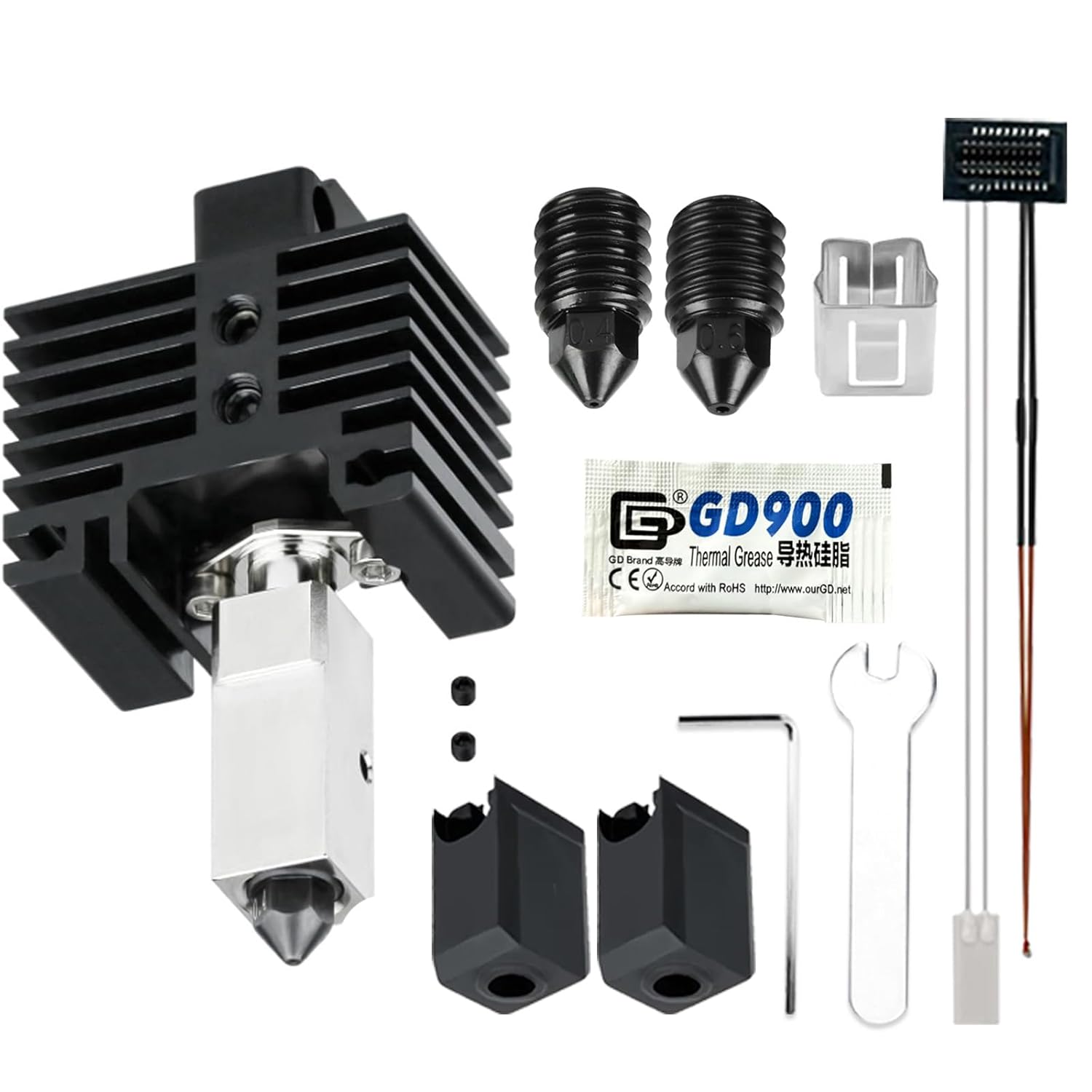 - Packaging: One set hotend with 24V 60W ceramic heater and thermistor,1pc silicone cover as spare part, Equipped with 0.4mm and 0.6mm hardened steel nozzles suitable for Bambu Lab 3d printer as backup, the two different nozzles provide you with different printing experiences.This Hotend Kits Fits for Bambu Lab P1P/P1S 3D Printer.