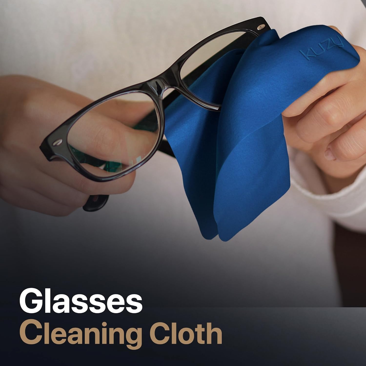 Kuzy 3 Pack Premium Microfiber Cleaning Cloth - Large Reusable Cloth for Glasses, Screens, MacBook Laptops, TVs, and Electronics - Scratch-Free, Lint-Free Cleaner, 3 Pack - Navy Blue