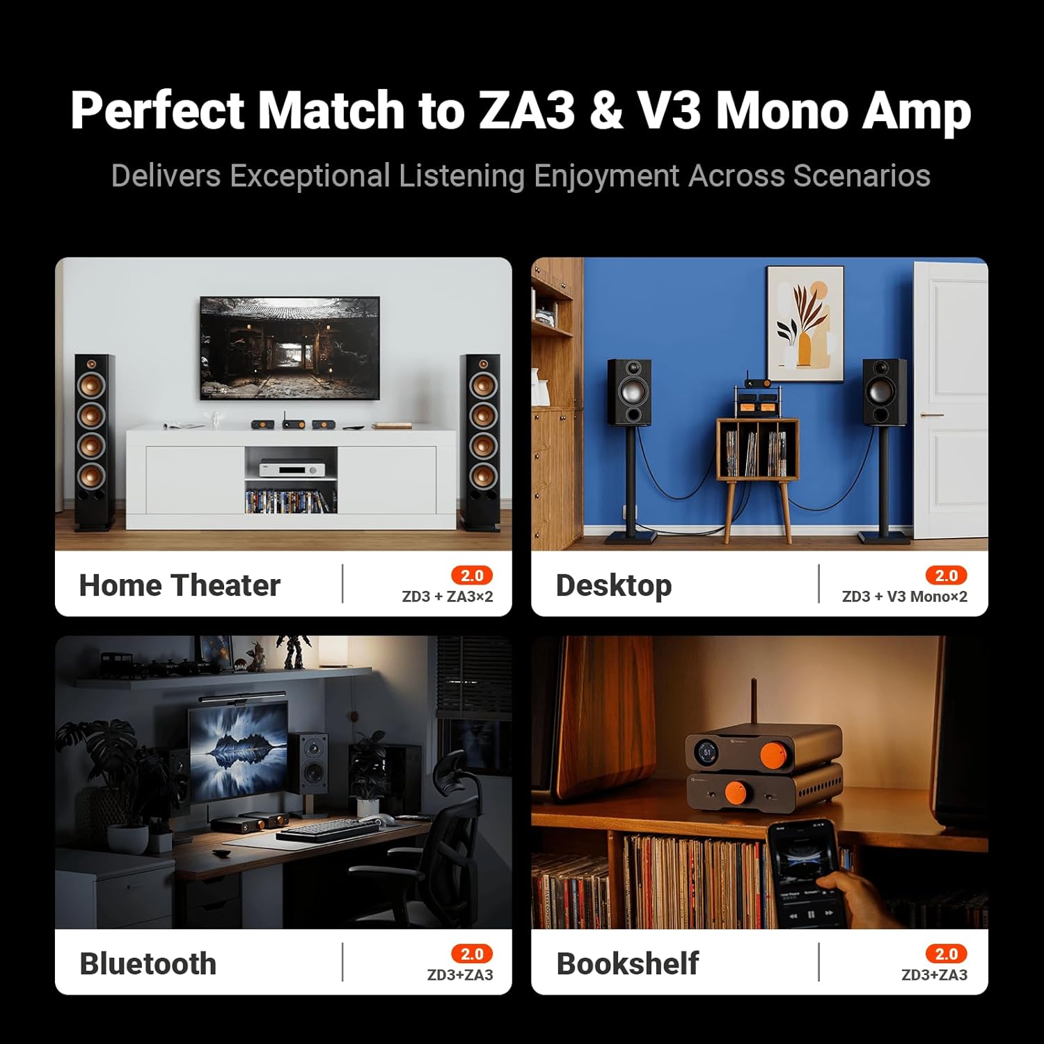 - Family Design: Featuring the same design language as the ZA3 amplifier: compact and exquisite appearance and audiophile-grade components for high performance and excellent sound quality. Pair it with the ZA3 to create a robust home audio system