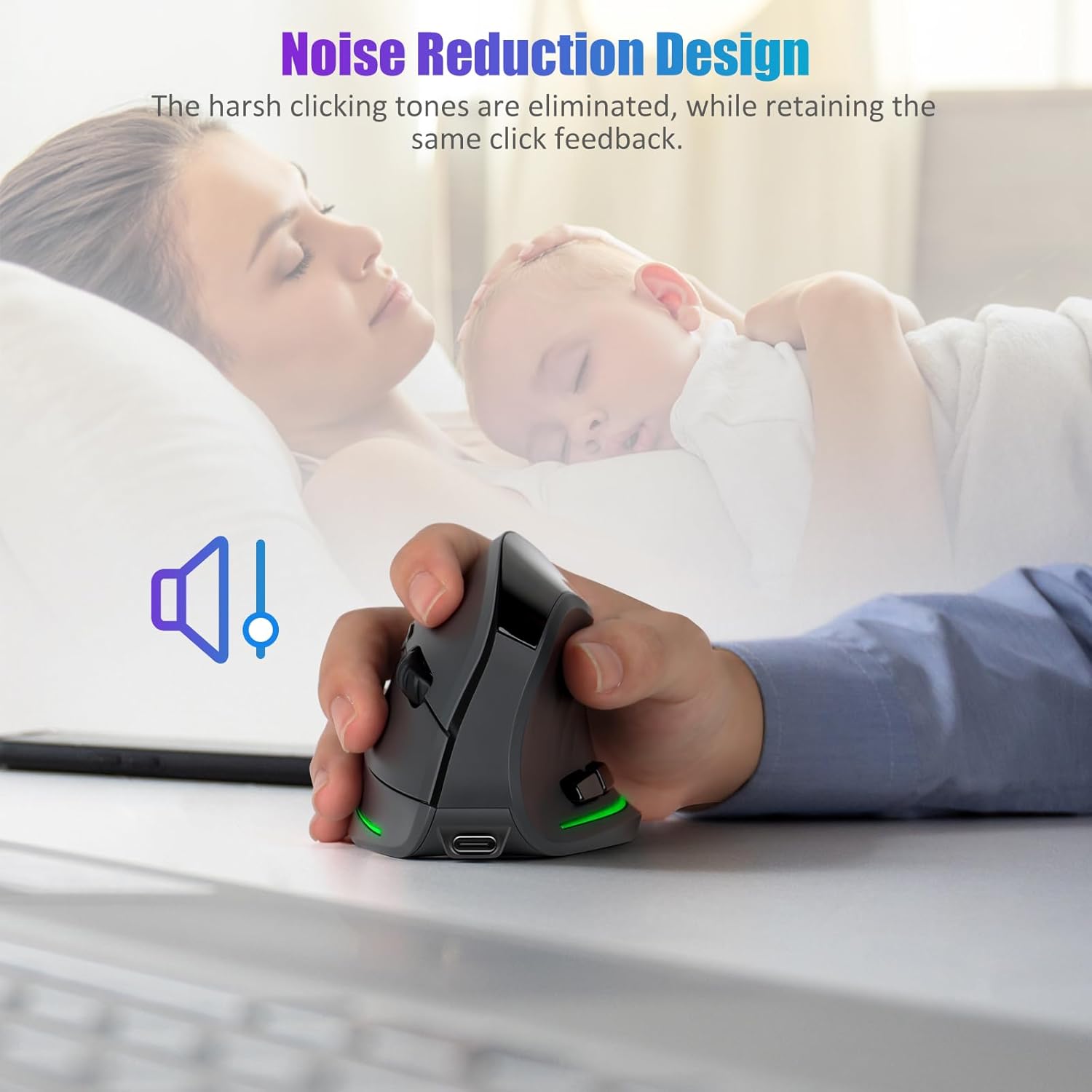 - 【Ergonomic Natural Grip】 This vertical mouse bases on ergonomics, effectively reducing wrist strain and muscle pain by a natural handshake griping way.