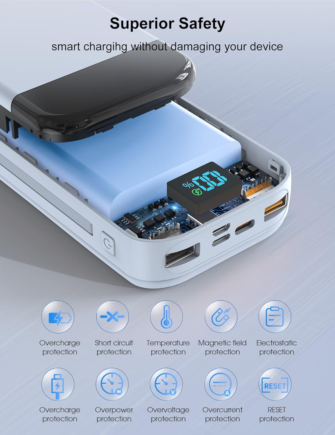 - PD 20W Quick Recharging: Fast charging power bank Type-C port supports PD20W fast output and input. USB-A port supports 22.5W QC3.0 fast charging output. micro USB supports 18W fast input. Charging is one step faster, quickly for you to get rid of the anxiety about the remaining battery power of the phone.
