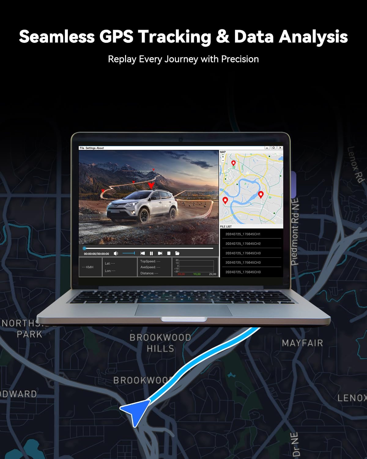 - SEAMLESS GPS TRACKING & DATA ANALYSIS - Track speed, route, and travel data in real-time with the built-in GPS. Whether navigating Chicago’s winter traffic or New York’s complex streets, the dash cam mirror ensures accurate driving insights