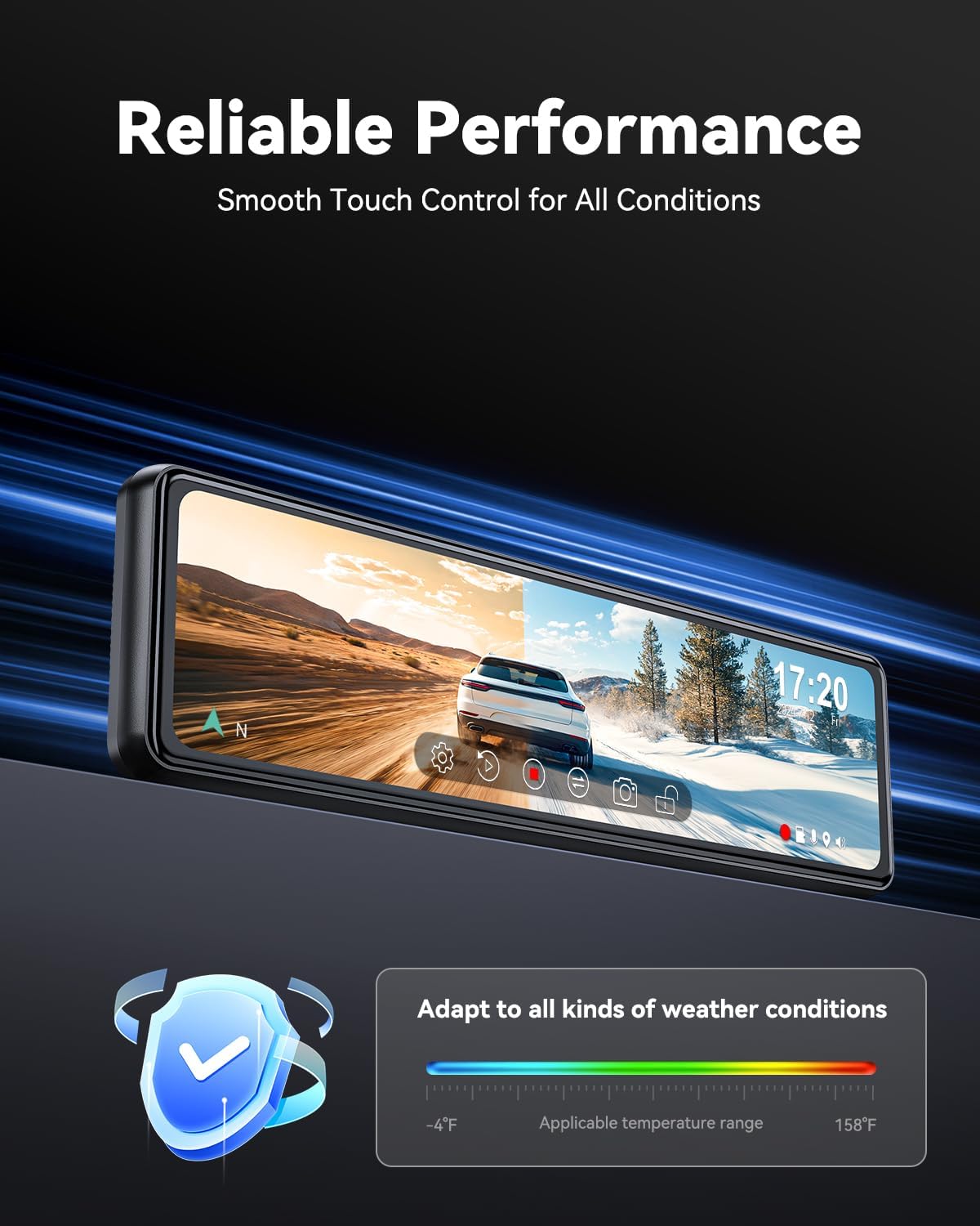 - ENHANCED NIGHT VISION FOR ALL CONDITIONS - Equipped with powerful night vision technology, the T860+ rear view mirror dash cam allows you to drive with confidence even in low-light situations. Its advanced low-light sensor and WDR (Wide Dynamic Range) technology help deliver clear, balanced footage, ensuring you won’t miss a thing even at night