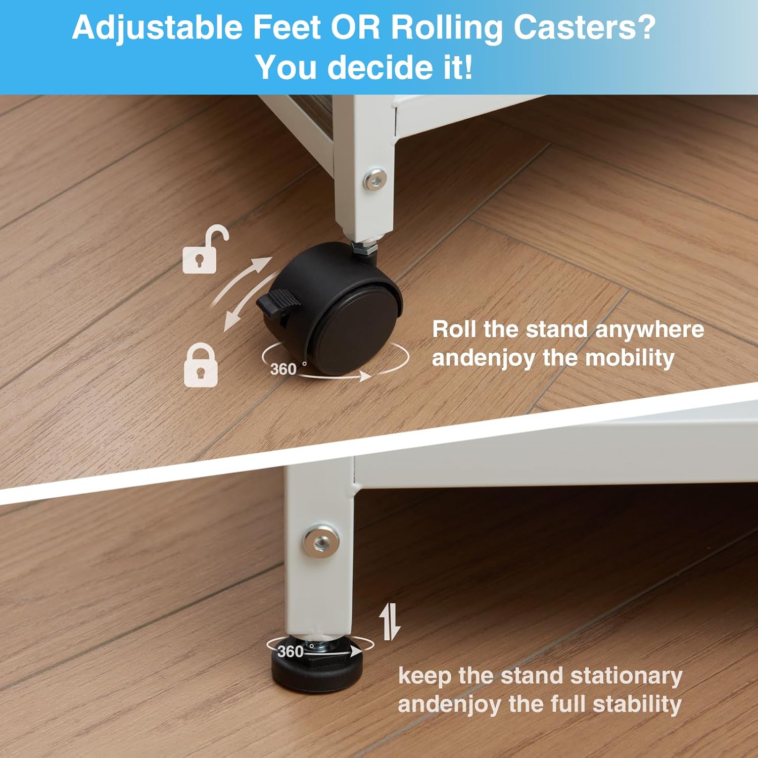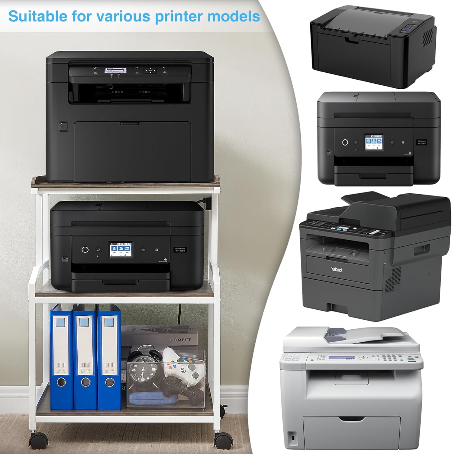 - Easy to Move & Stable When Stationary:The printer stand with storage has 4 wheels that can rotate 360°, and you can push the printer stand to wherever you want. 2 of the 4 wheels can be locked, allowing flexible movement while maintaining sufficient stability in the placement position of the printer stand.
