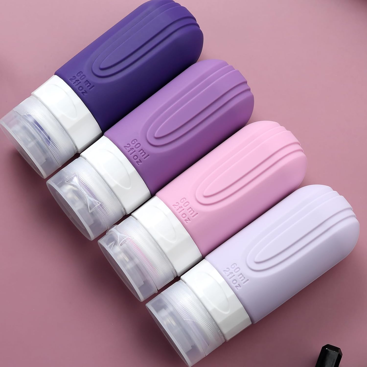 - TSA carry on approval: 4 pack 2 oz silicone travel bottles, very suitable for shampoo, conditioner, shower gel, lotion, hand sanitizer and shower gel. It is equipped with a high-quality zipper transparent wash bag, which saves space and allows you to travel long distance freely like a professional.