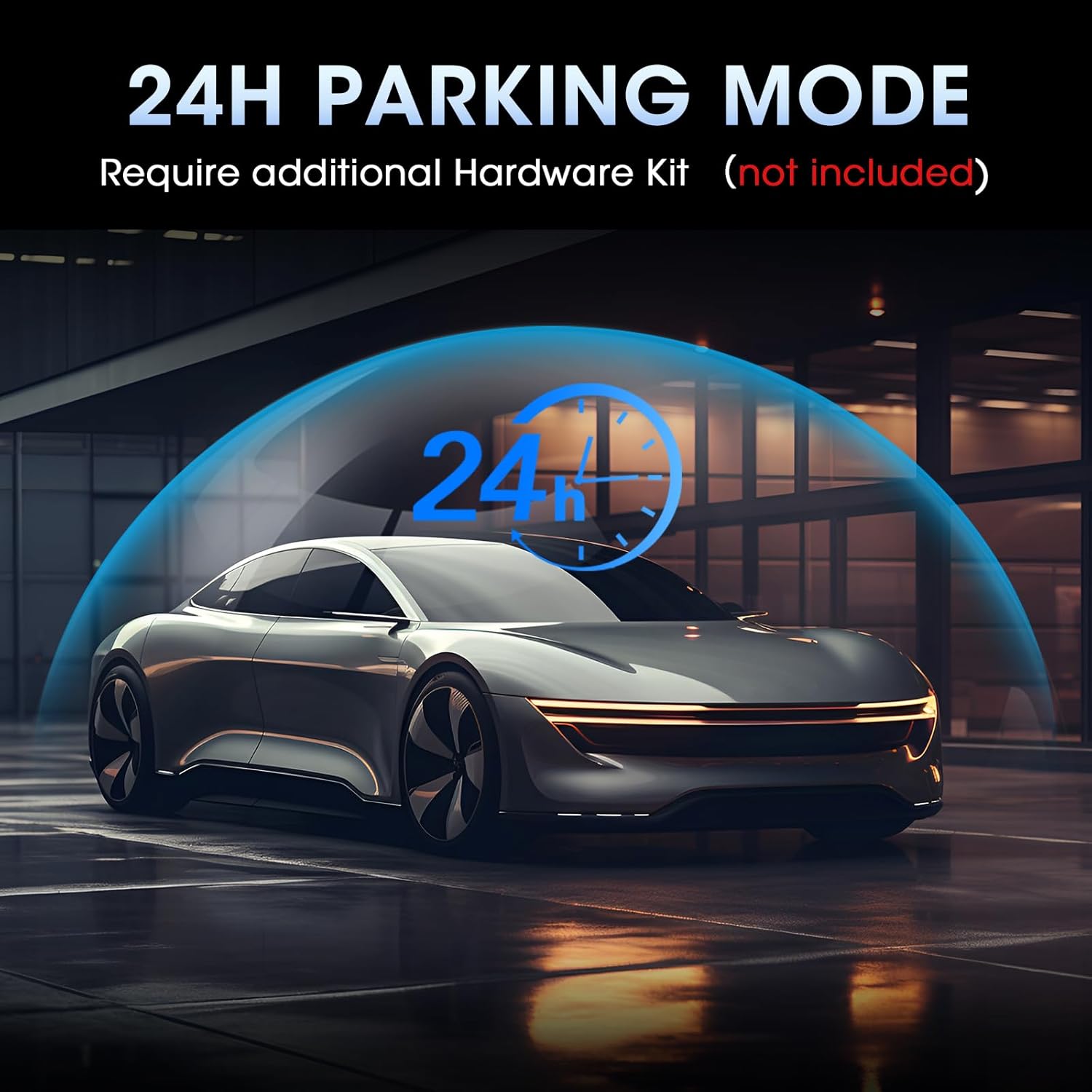 - 【24H Parking Monitor】:Parking monitor enables the dash cam front and rear camera to start recording a locked video for about 20s once the G-sensor encounters a collision during parking.To use the 24H parking monitoring function, a hardware kit must be purchased separately. Benefit from our reliable customer assistance and ensure the longevity of your device.